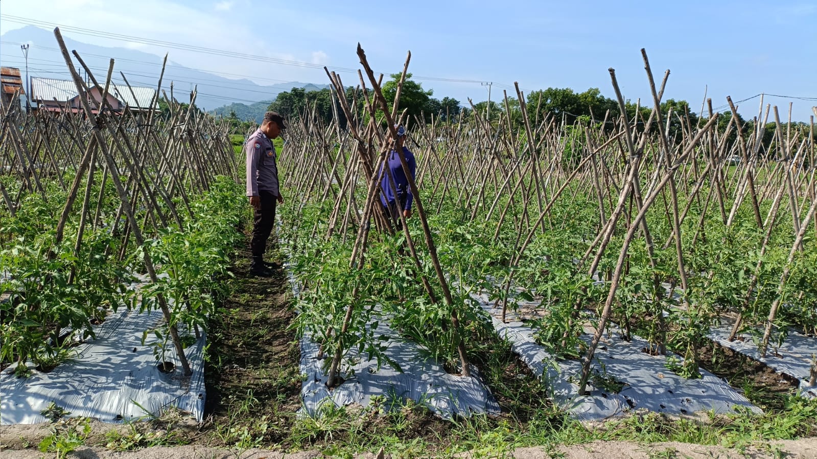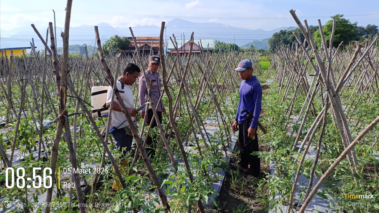 Sumbawa Besar–NTB, Dalam rangka mendukung program ketahanan pangan nasional, Bhabinkamtibmas Desa Tarusa, BRIPKA Heriyanto, melaksanakan kegiatan sambang sekaligus memantau perkembangan tanaman sayur mayur, khususnya tanaman tomat yang telah berusia 35 hari, Rabu (05/03/25) pagi.