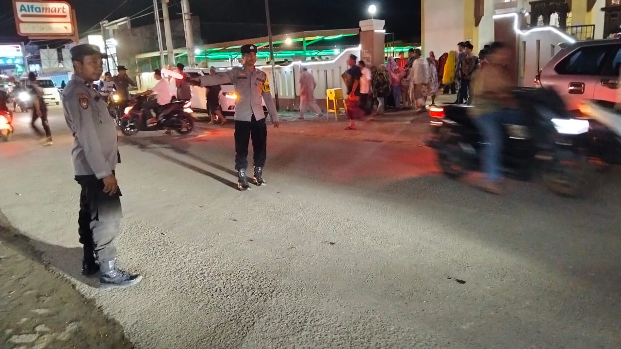 Pengamanan tersebut dilakukan di depan Masjid Nurul Islam yang berlokasi di pinggir jalan utama simpang empat Desa Maluk merupakan titik simpul kepadatan arus lalu lintas di Kecamatan Maluk.