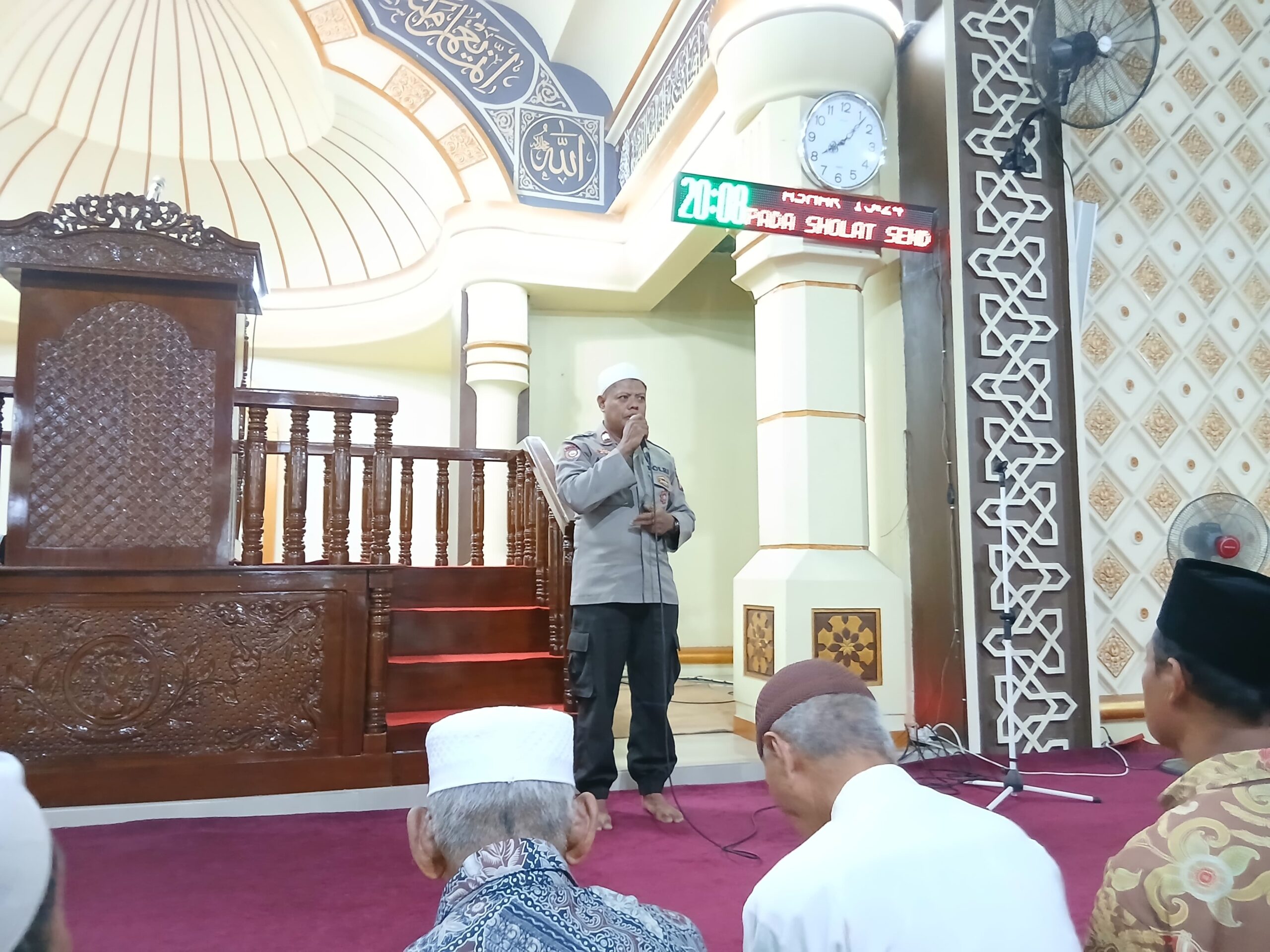 Kota Bima, NTB (5 Maret 2025) – Sat Binmas Polres Bima Kota menggelar kegiatan ceramah kultum dan himbauan keamanan dan ketertiban masyarakat (kamtibmas) serta melaksanakan sholat Isya, Tarawih, dan Witir berjamaah di Masjid Agung Al-Muwahhiddin Kota Bima, Selasa (4/3) pukul 19.47 WITA.