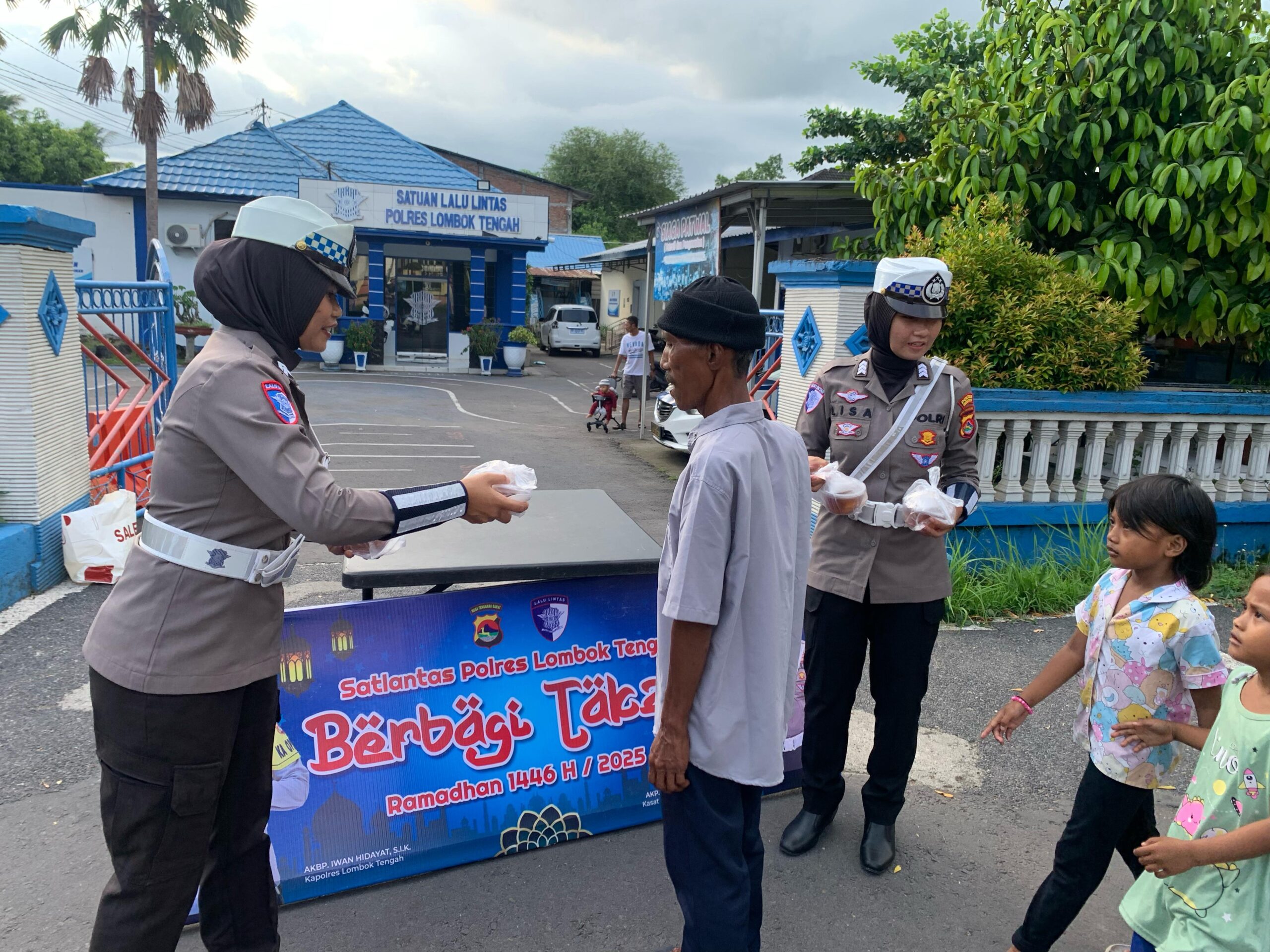 Lombok Tengah (NTB) – Satuan Lalu Lintas Polres Lombok Tengah membagikan takjil kepada masyarakat untuk berbuka puasa selama bulan Ramadan 1446 Hijriah.