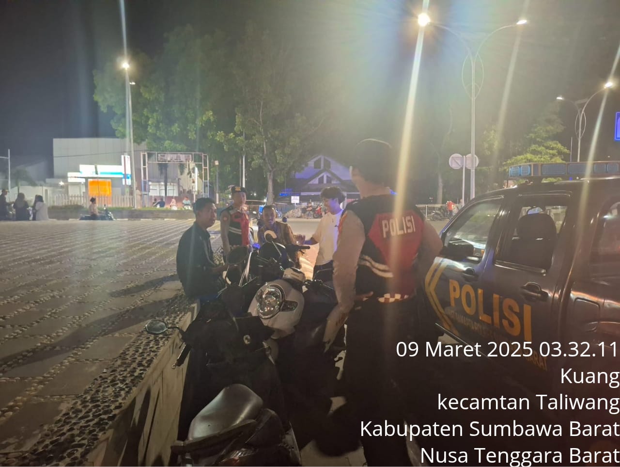 Sumbawa Barat, NTB – Dalam rangka mengantisipasi gangguan keamanan dan ketertiban masyarakat (kamtibmas) selama bulan Ramadan, Sat Samapta Polres Sumbawa Barat melaksanakan patroli sahur pada hari Minggu, 09 Maret 2025, pukul 03.00 WITA. Kegiatan ini dilakukan di Taman Alun-alun Kecamatan Taliwang, Kabupaten Sumbawa Barat, dengan menggunakan kendaraan roda empat.
