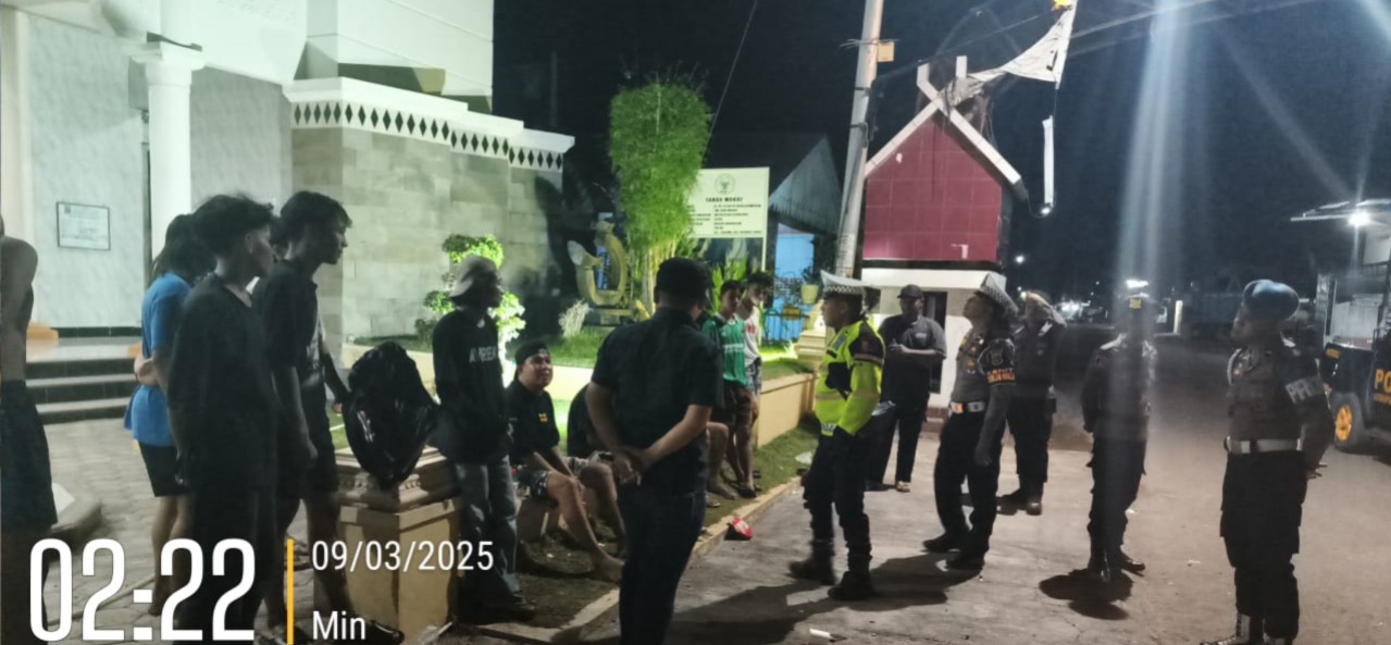 Kota Bima, NTB (09 Maret 2025) – Dalam upaya menjaga ketertiban dan keamanan selama bulan suci Ramadan, Personel Gabungan Polres Bima Kota melaksanakan patroli subuh guna mengantisipasi aksi balap liar dan perang petasan. Kegiatan ini berlangsung pada Minggu, 9 Maret 2025, mulai pukul 03.30 WITA, dengan menyisir beberapa titik rawan di Jl. Karantina Jatiwangi dan Jl. Kepiting Tanjung, Kota Bima.