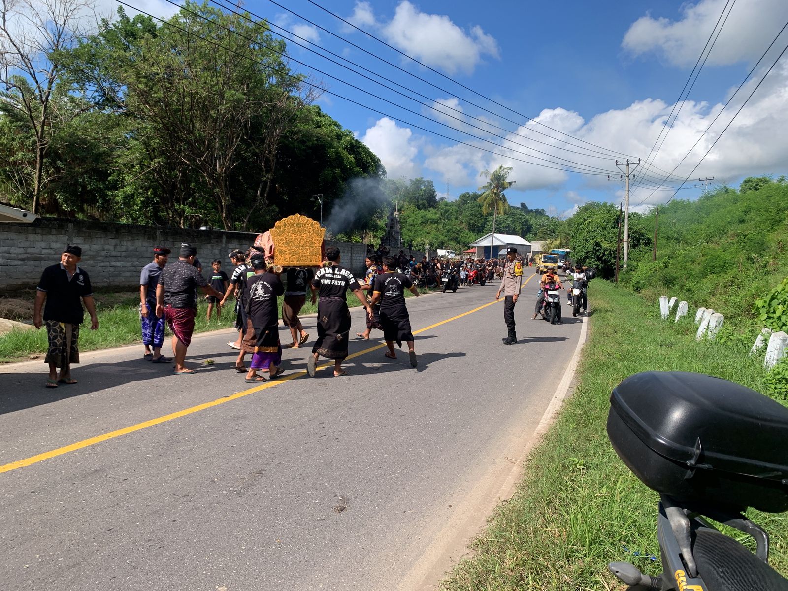 Selain melayat, Briptu Astu Mudita juga turut serta dalam pengaturan arus lalu lintas dan pengawalan jenazah menuju lokasi kremasi setempat sebagai bagian dari tugas dan tanggung jawabnya sebagai Bhabinkamtibmas.