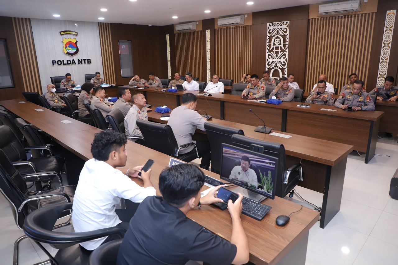 Mataram – Polda Nusa Tenggara Barat (NTB) menggelar Rapat Koordinasi (Rakor) Lintas Sektoral, Senin (10/3/2025), guna memastikan kesiapan pengamanan Idul Fitri 1446 H/2025 M. di Ruang Presisi Polda NTB ini dipimpin oleh Wakapolda NTB dan dihadiri Irwasda Polda NTB, para pejabat utama (PJU) Polda NTB, serta para Kapolres dan Kapolresta jajaran.