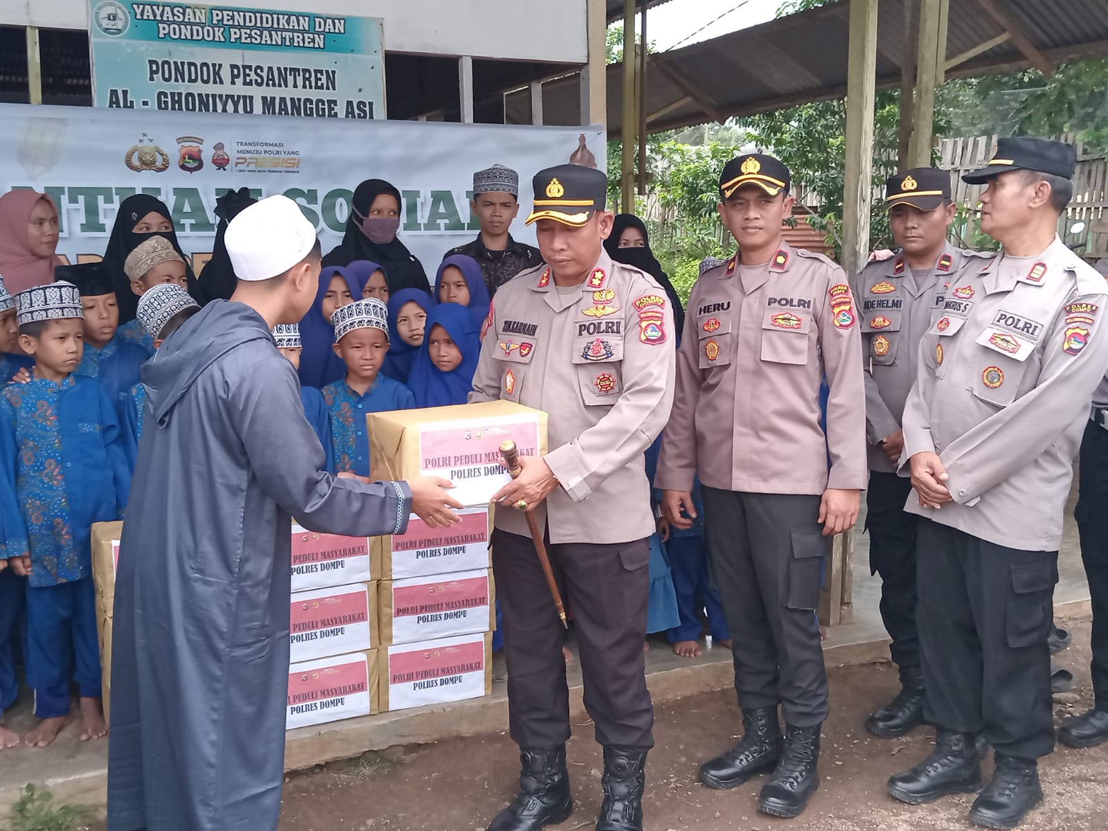 Dalam semangat berbagi di bulan suci Ramadhan, Kapolres Dompu AKBP Zulkarnain, S.I.K., didampingi Kasat Binmas Polres Dompu AKP Makrus, S.Sos., menyalurkan bantuan sosial kepada Pondok Pesantren Al-Ghoniyyu, Desa Manggeasi, Kecamatan Dompu, pada Kamis, 13 Maret 2025.