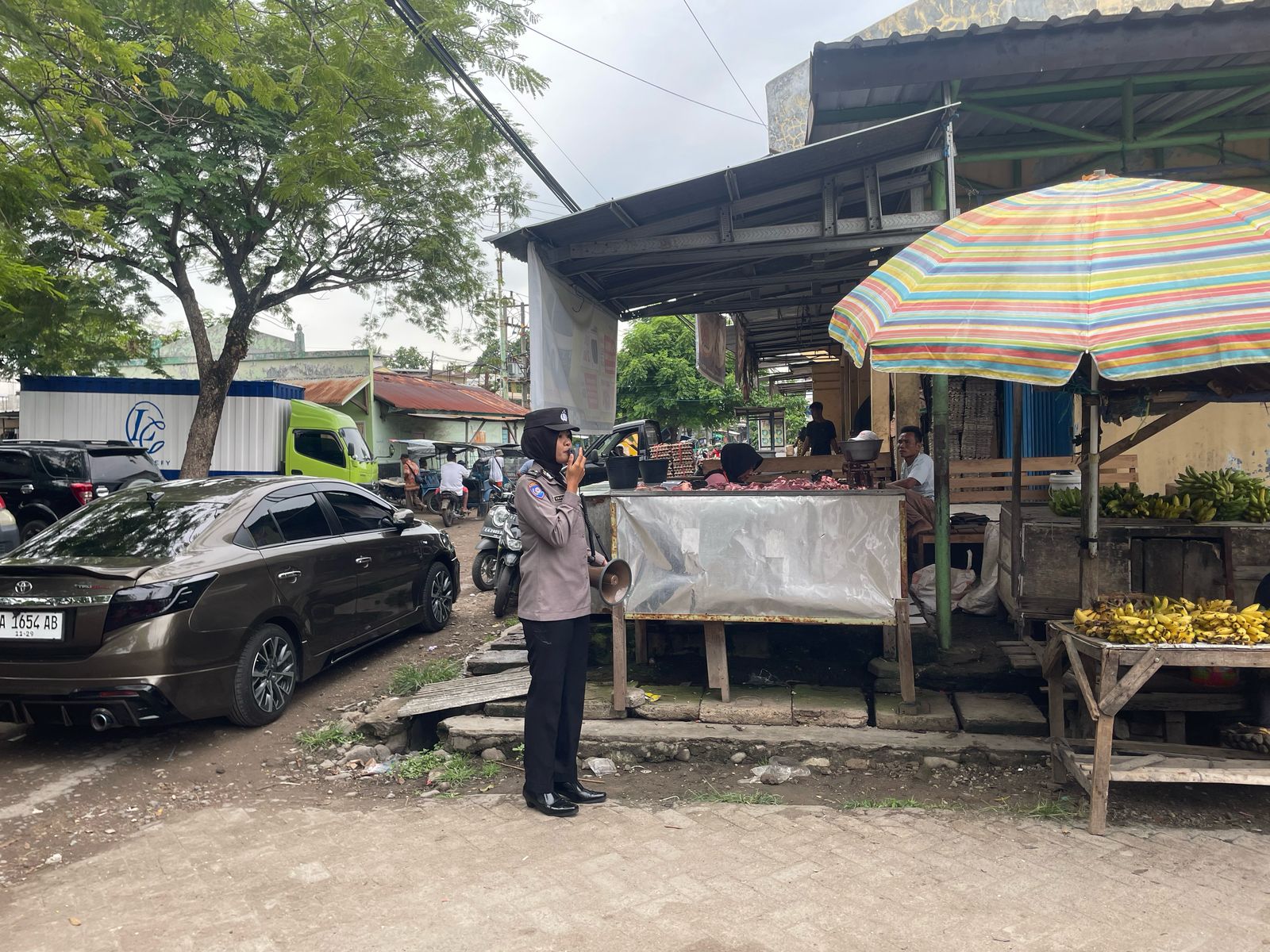 Sumbawa Besar–NTB, Personel Satuan Pembinaan Masyarakat (Sat Binmas) Polres Sumbawa melaksanakan kegiatan pemberian himbauan kepada masyarakat yang sedang beraktivitas di Pasar Labuhan Sumbawa, Kecamatan Labuhan Badas, pada hari Sabtu (15/3/2025).