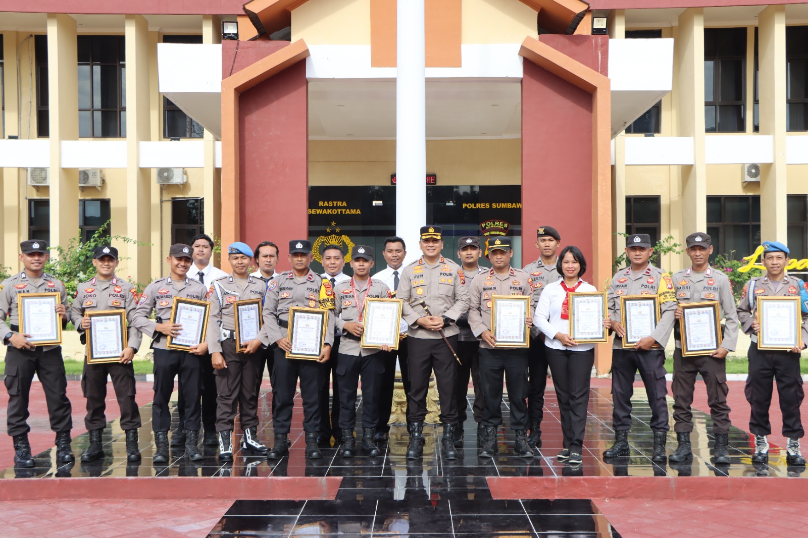 “Penghargaan ini tidak hanya diberikan kepada rekan-rekan yang bertugas di operasional, tapi juga kepada yang bertugas di bidang pembinaan, baik itu anggota Polri maupun PNS Polri,” tambah Kapolres.