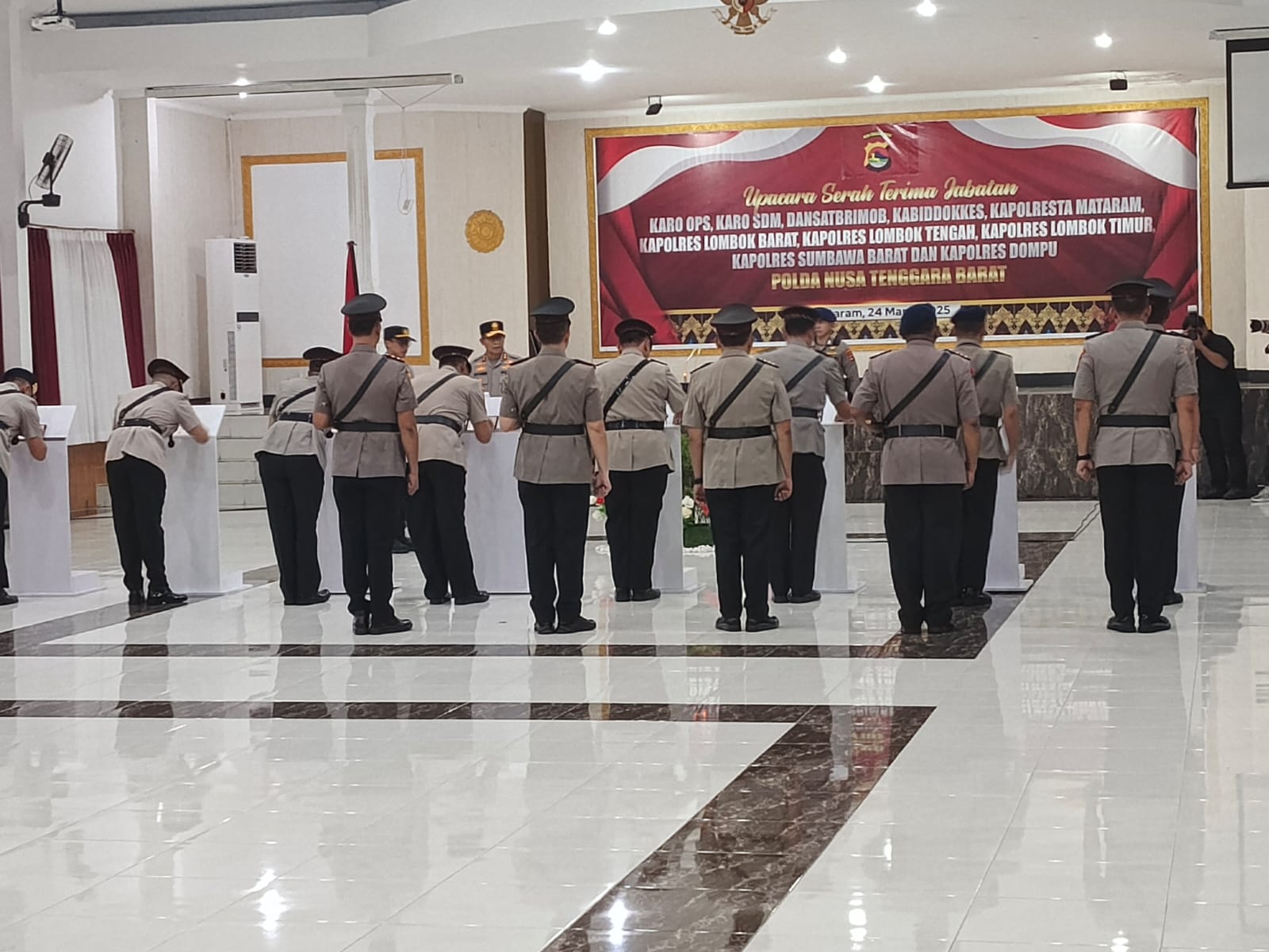 Serah terima jabatan berlangsung di Gedung Sasana Dharma Polda NTB dipimpin langsung oleh Kapolda NTB, Irjen Pol. Drs. Hadi Gunawan, S.H., S.I.K., yang dihadiri segenap Pejabat Utama Polda NTB serta para perwira Polda NTB.
