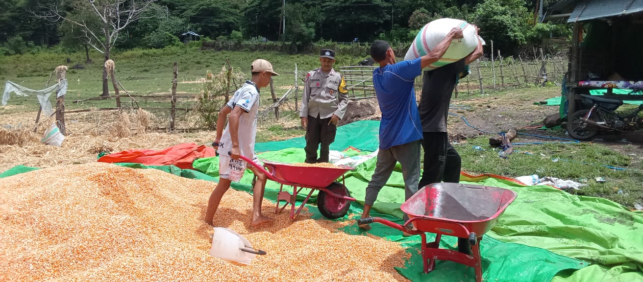 Dalam upaya mendukung Program Ketahanan Pangan Nasional menuju Indonesia Emas 2024, Bhabinkamtibmas Desa Madaprama, BRIPKA RIJAIDIN, melaksanakan pemantauan panen jagung di lahan milik Arifin yang berada di Dusun Mada Oi Ua, Desa Madaprama, Kecamatan Woja, Kabupaten Dompu, Selasa (25/03/2025).