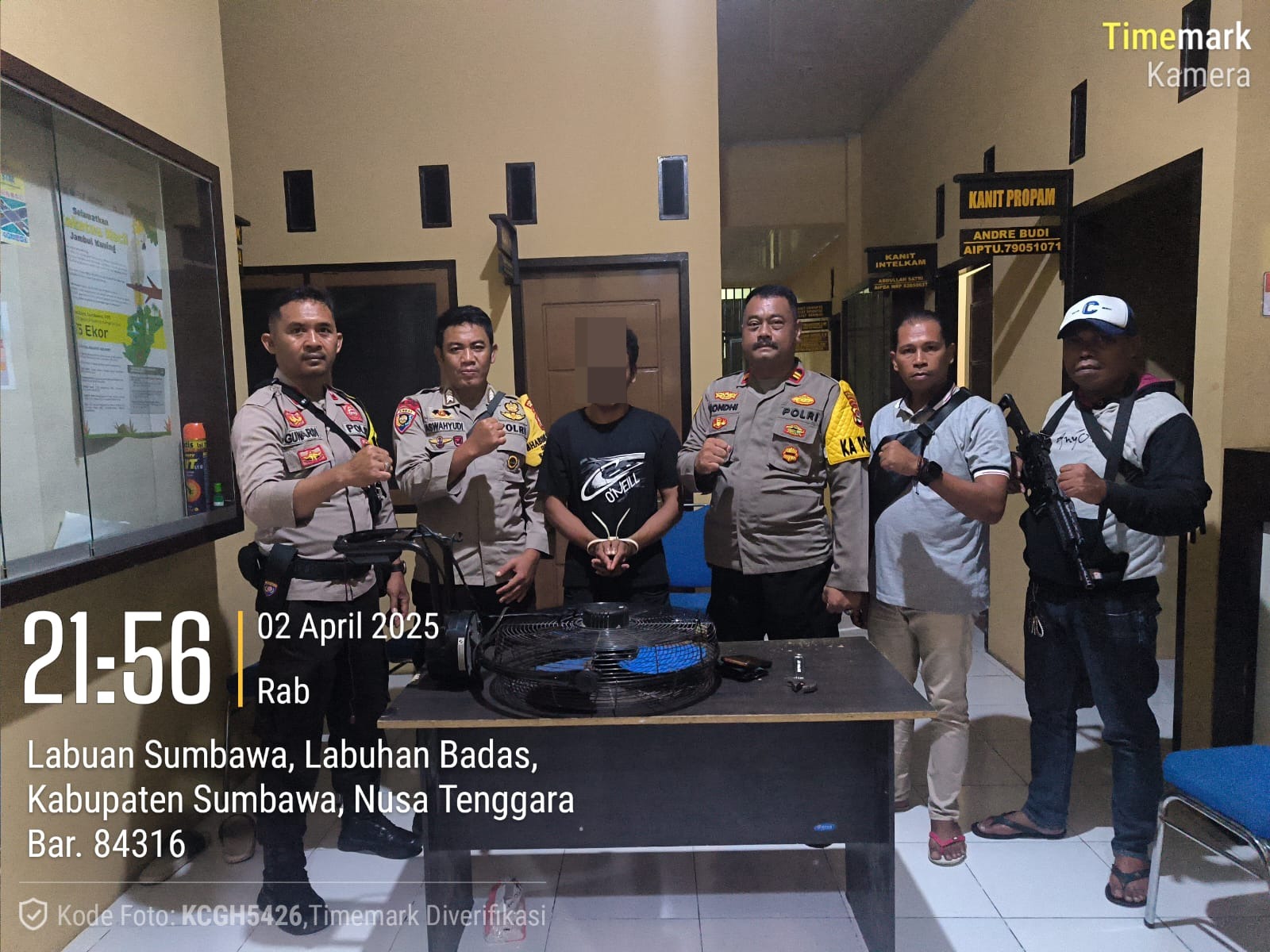 Sumbawa Besar–NTB, Personel Polsek Labuhan Badas, jajaran Polres Sumbawa, berhasil menangkap seorang pria berinisial N (25), warga Dusun Kauman, Desa Lab Sumbawa, terkait dugaan tindak pidana pencurian. Pelaku dibekuk tanpa perlawanan pada Rabu malam, 2 April 2025, sekitar pukul 21.00 Wita, di salah satu rumah warga di Kampung Empang, Dusun Kauman, Desa Labuan Sumbawa.