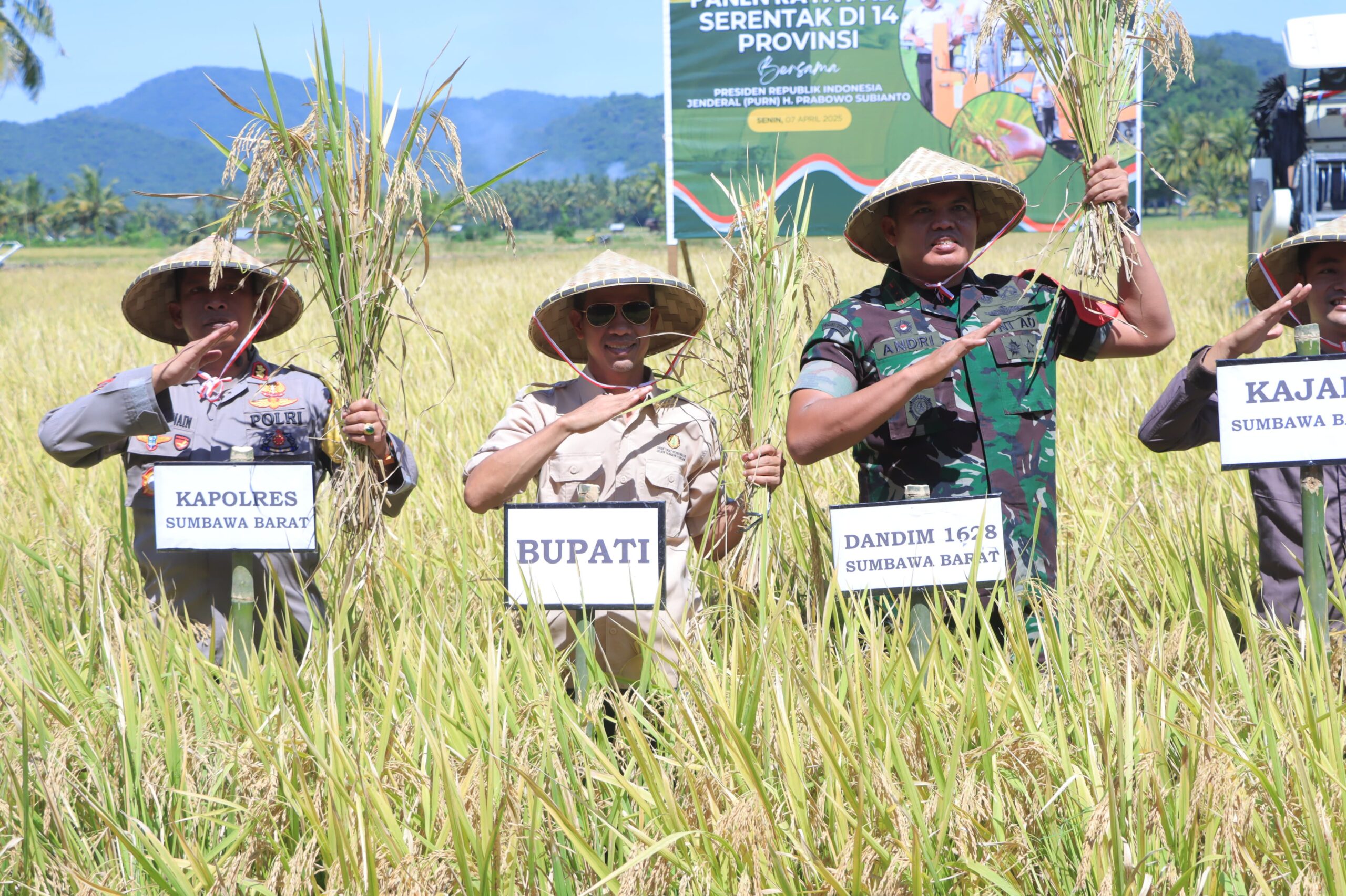 Acara panen raya padi dihadiri oleh Bupati Sumbawa Barat yang diwakili Asisten Perekonomian dan Pembangunan, Suhadi, S.P., M.Si., Dandim 1628/SB, Letkol Inf. Andi Karsa, S.A.P., M.Han., Kapolres Sumbawa Barat, AKBP Zulkarnain, S.I.K., Kepala Cabang Bulog Wilayah Kabupaten Sumbawa Barat, Kepala Dinas Pertanian, Kepala Dinas Ketahanan Pangan, Perwira Kodim 1628/SB, para Danramil, Kapolsek, dan Penyuluh Pertanian serta para kelompok tani.