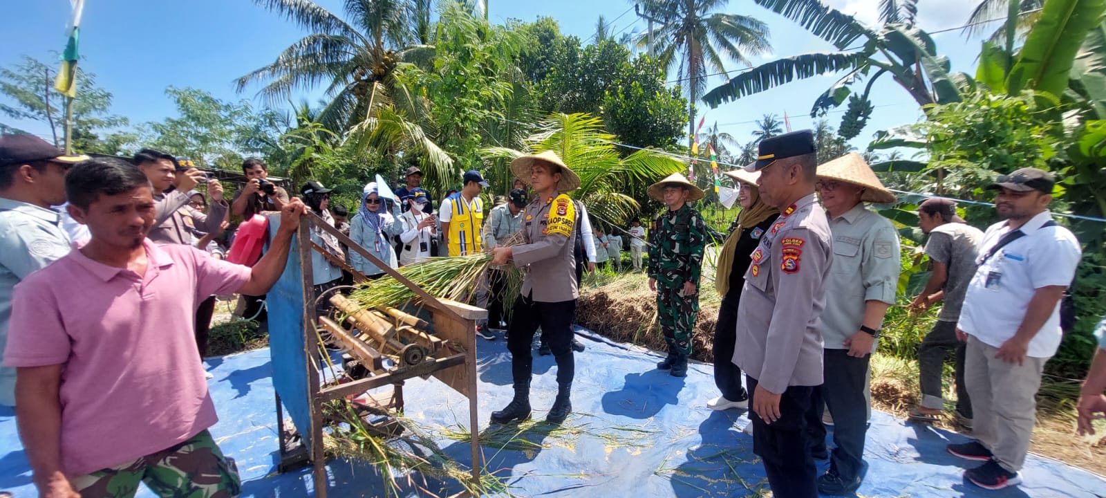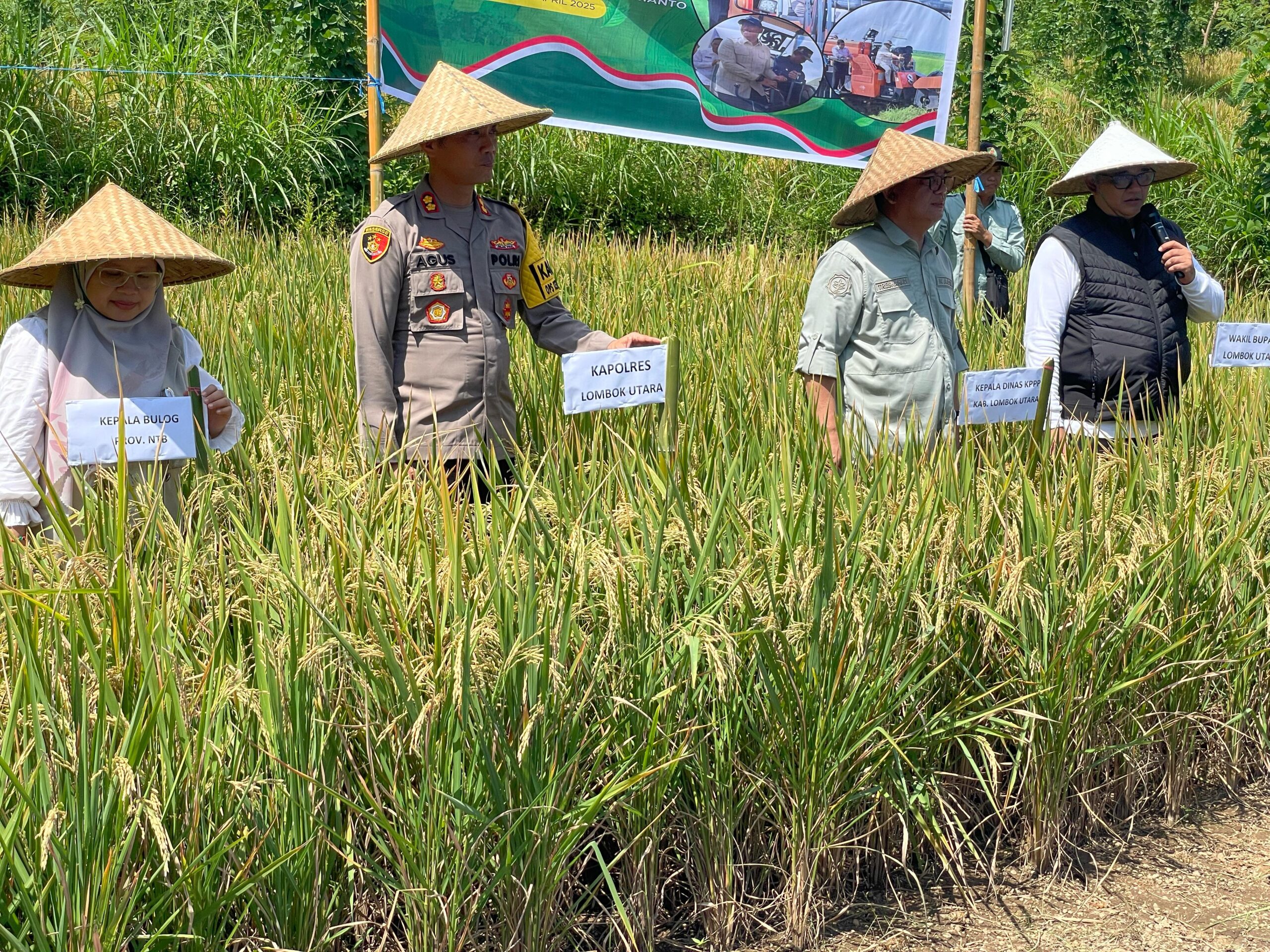 Lombok Utara (NTB) – Kapolres Lombok Utara AKBP Agus Purwanta S.I.K., menghadiri kegiatan Panen raya padi serentak 14 Provinsi, bertempat di Dusun Serimbun, Desa Dangiang Kecamatan Khayangan, Kabupaten Lombok Utara (KLU), Senin (7/4/2026), terpantau di lapangan yang hadir diantaranya, Waki Bupati Lombok Utara Kusmalahadi Syamsuri, Dandim 1606 Lombok Mataram, unsur Bulog NTB, Kepala BPS Lombok Utara, Kepala BWS NTB, Pimpinan PT Pupuk Indonesia NTB, Kepala BSIP NTB, Asisten II Lombok Utara, Kepala OPD Lingkup Pemda KLU, Camat Kayangan Siti Rukayah, Kepala UPT DKPPP Se Kabupaten Lombom Utara, FORKOMPIMCAM Kecamatan Khayangan, Kades Dangiang, Anggota Polsek Khayangan, BKTM Desa Dangiang, Kelompok Tani Serimbun ,para Toga dan tomas