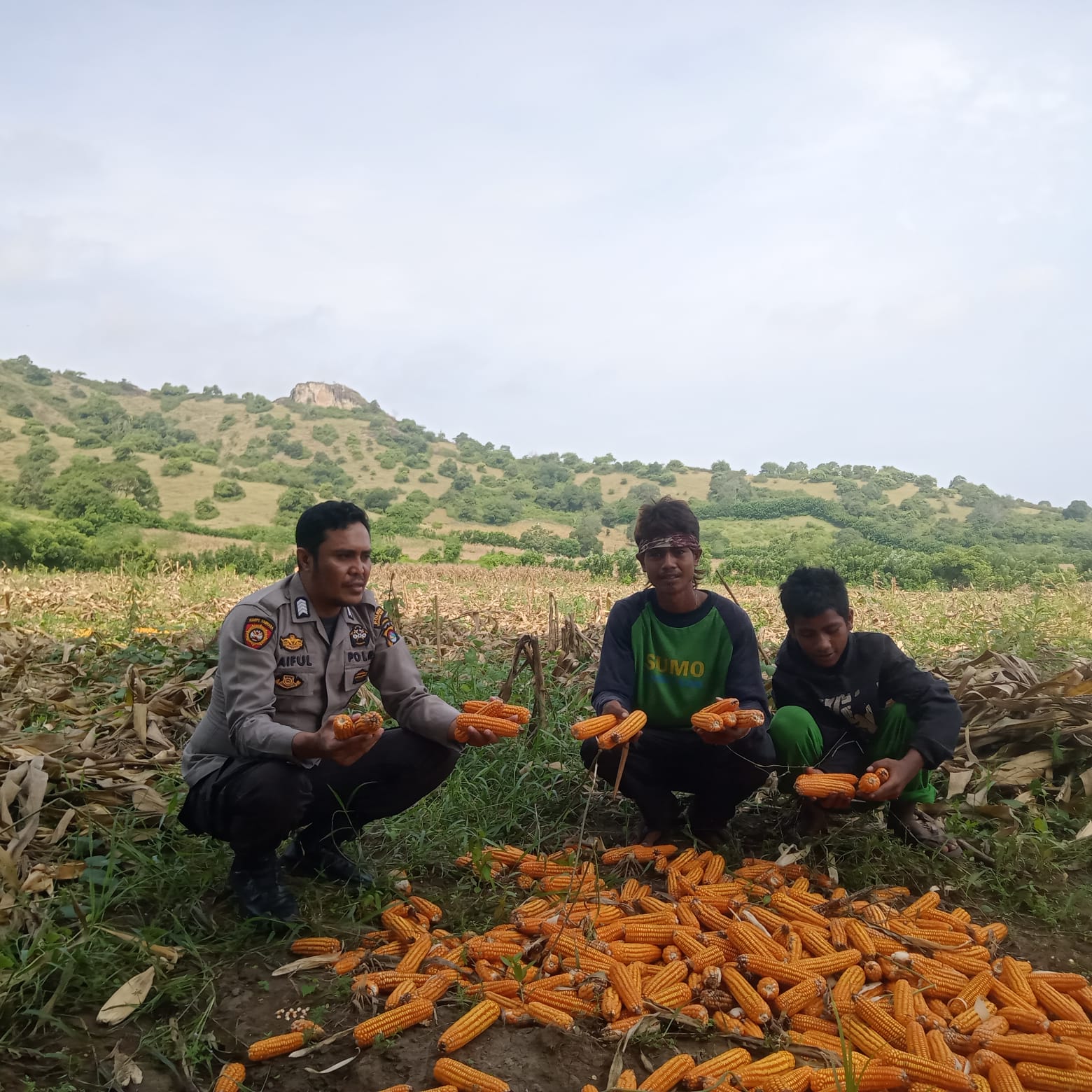 Sumbawa Barat, NTB – Dalam rangka mendukung program ketahanan pangan nasional, Bhabinkamtibmas Desa Senayan melaksanakan kegiatan pendampingan panen jagung di Desa Senayan, Kecamatan Poto Tano, Kabupaten Sumbawa Barat, Rabu (9/4) pukul 09.30 WITA.