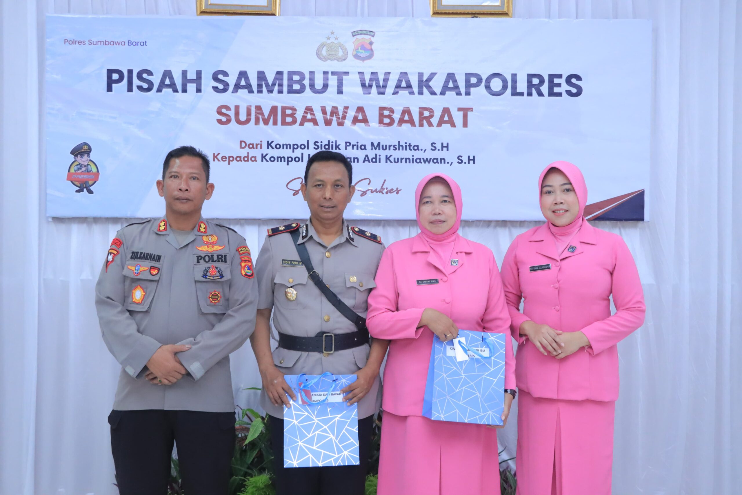 Sementara, Kapolres Sumbawa Barat menyampaikan apresiasi penghargaan serta ucapan terima kasih kepada Kompol Sidik yang telah memberi warna dan kemajuan terutama dalam pembinaan personel selama bertugas di Polres Sumbawa Barat dan ucapan selamat atas promosi jabatan sebagai Wakapolres Lombok Timur semoga semakin sukses. Ucapan selamat datang untuk Kompol Nyoman Adi selamat bergabung di Polres Sumbawa Barat, segera menyesuaikan diri dan bisa langsung action dalam membantu tugas Kapolres terutama dalam pembinaan personel.