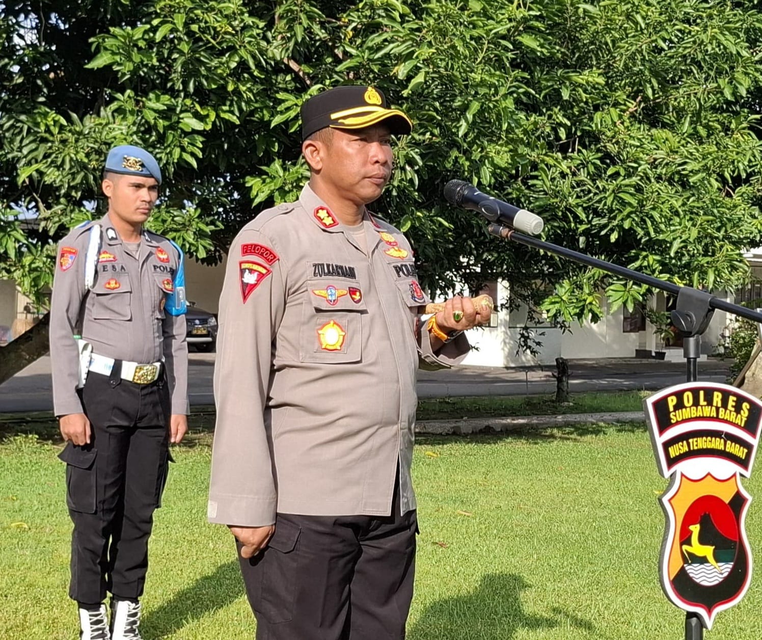 Sumbawa Barat, NTB – Kapolres Sumbawa Barat, AKBP Zulkarnain, S.I.K., memimpin apel pagi di Lapangan Apel Wicaksana Laghawa Polres Sumbawa Barat pada jam pimpinan, Senin pagi (14/04/2025).