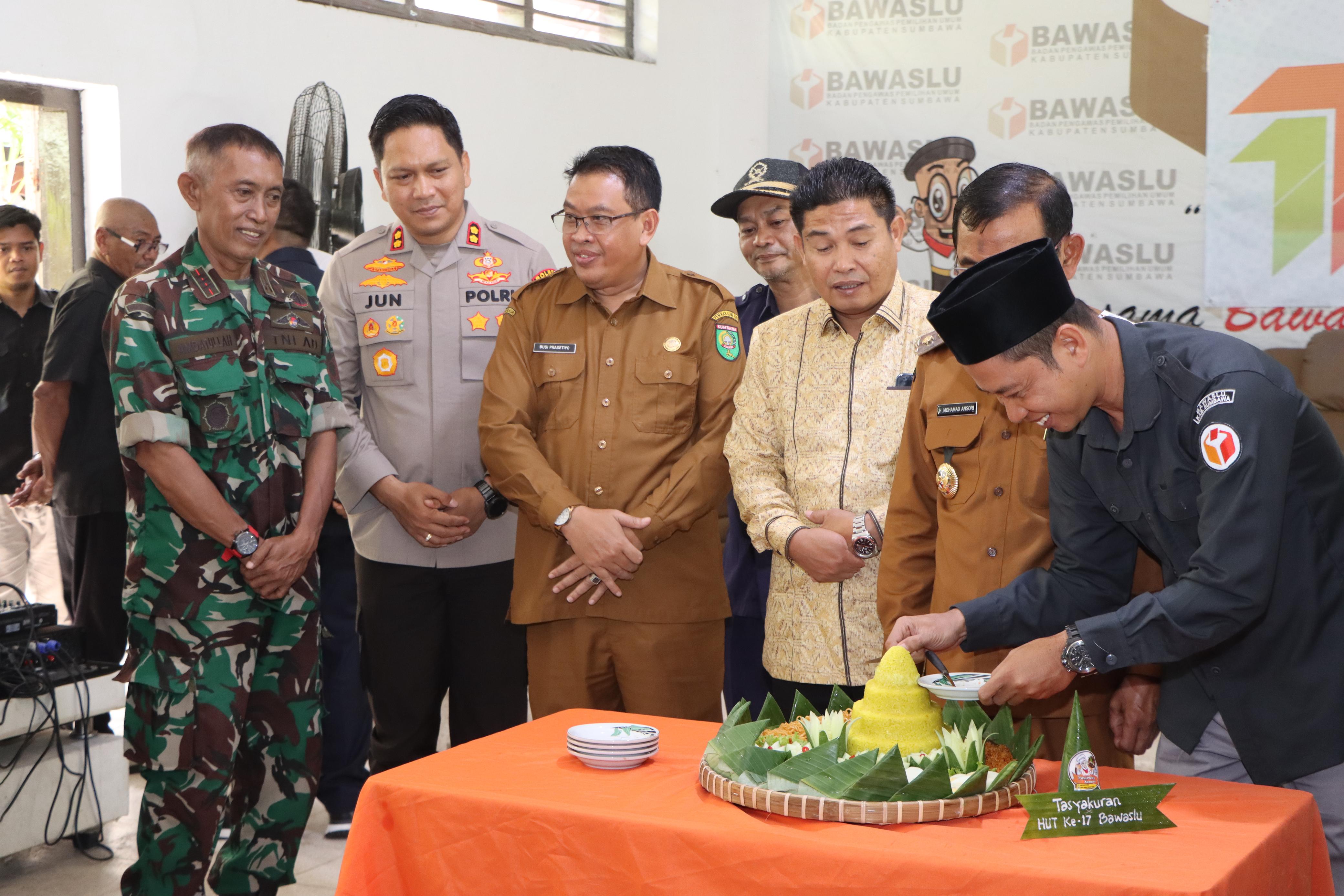 “Saya mengucapkan selamat ulang tahun yang ke-17 kepada Bawaslu Kabupaten Sumbawa,” ujar Kapolres.