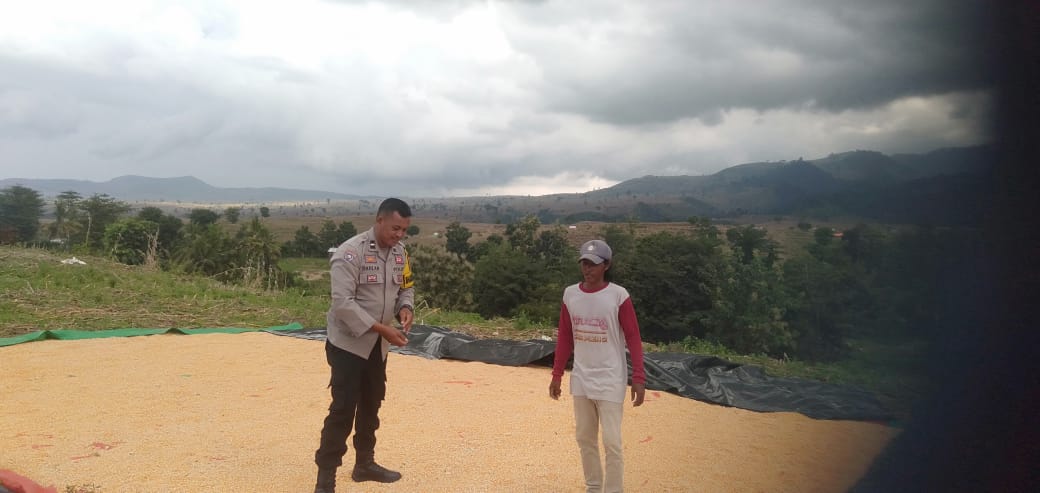 Bhabinkamtibmas Desa Saneo Pantau Panen Jagung Dukung Ketahanan Pangan Nasional