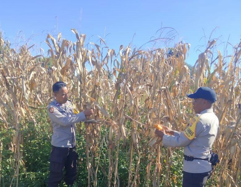 Bhabinkamtibmas Polsek Bolo Polres Bima Polda NTB terus menunjukkan peran aktif dalam mendukung Program Ketahanan Pangan Nasional melalui kegiatan monitoring tanaman jagung milik warga di wilayah binaan.