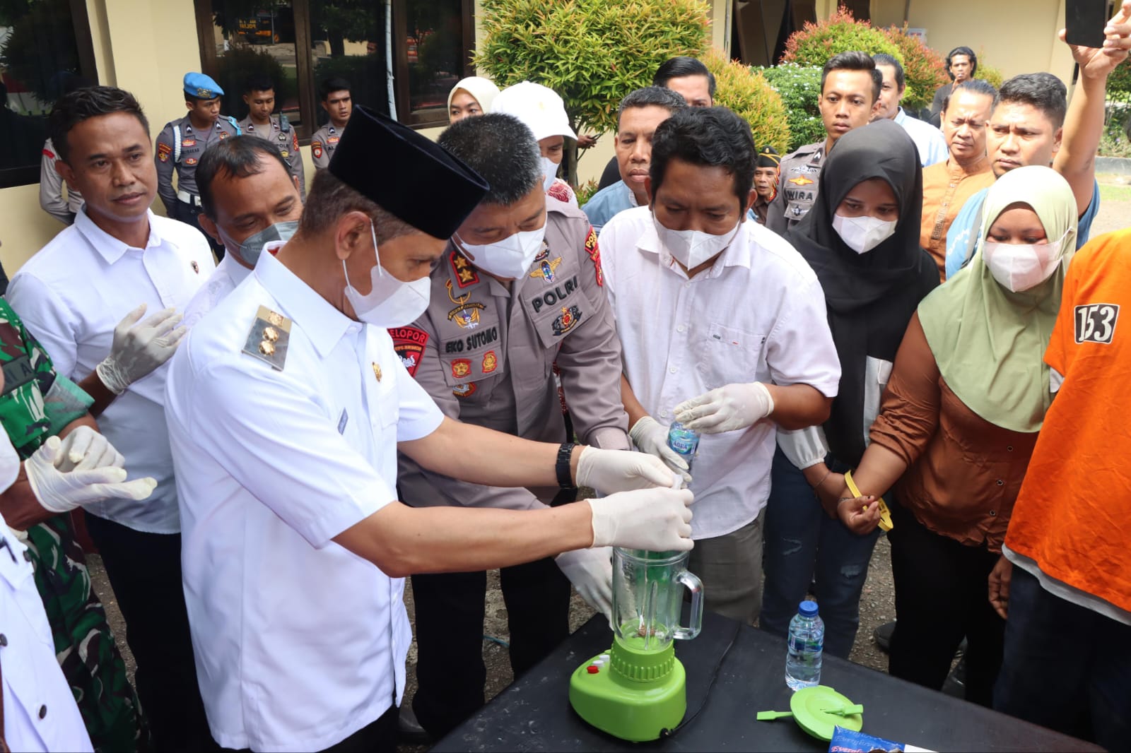 Selanjutnya 51,11 gram shabu hasil sitaan dimusnahkan dengan cara diblender dan dibuang ke TPA dengan turut disaksikan oleh segenap hadirin.
