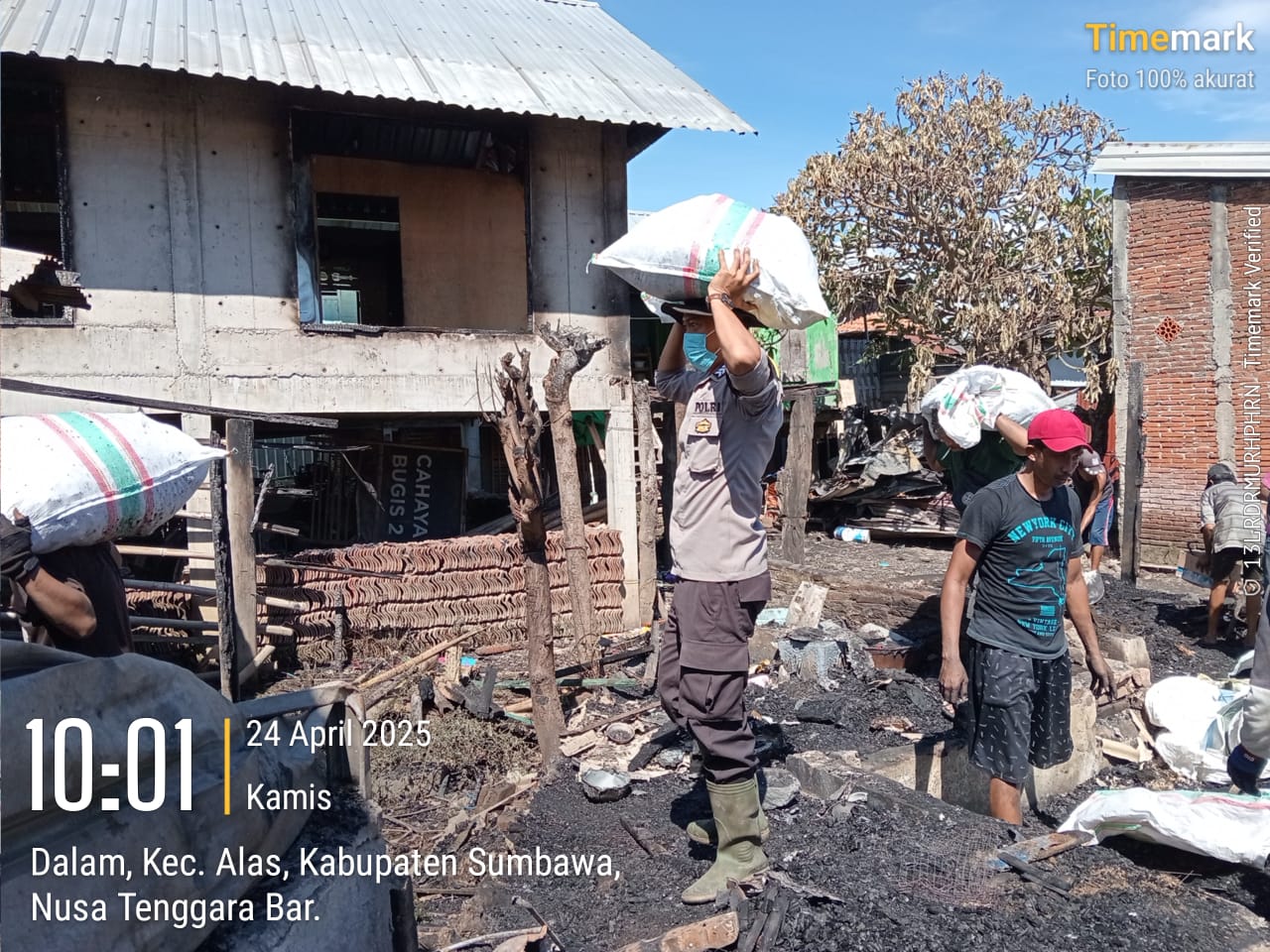 Kapolsek Alas, Kompol Satrio, S.H., yang turut hadir dalam kegiatan tersebut menyampaikan bahwa aksi gotong royong ini merupakan wujud kepedulian Polri dan seluruh aparatur di Kecamatan Alas terhadap musibah yang menimpa warga Dusun Dalam. “Kegiatan ini adalah bentuk empati dan solidaritas kami. Semoga dengan bantuan ini, sedikit meringankan beban saudara-saudara kita yang terkena musibah,” ujarnya di sela-sela kegiatan.