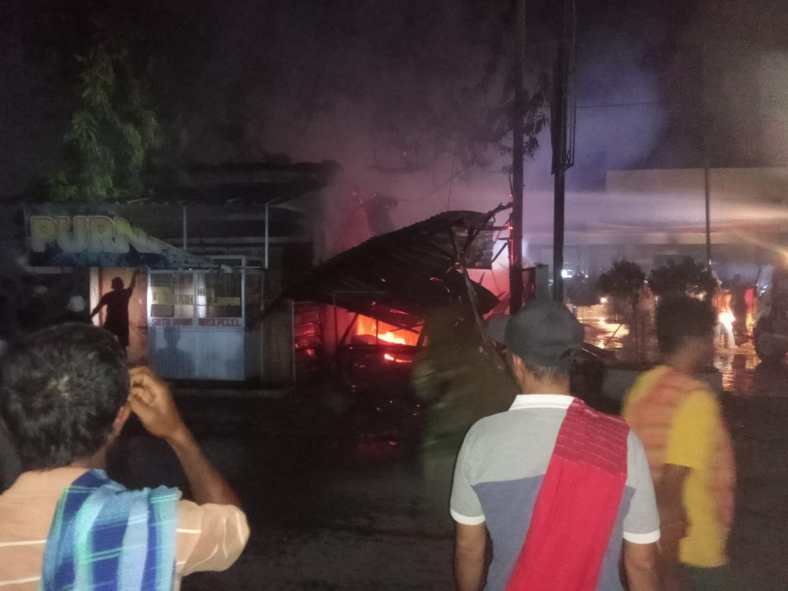 Bima, NTB (27 April 2025) – Personel Polsek Sape Polres Bima Kota bergerak cepat membantu memadamkan api saat terjadi kebakaran yang melanda Rumah Makan Purnama dan Warung Kopi di Desa Naru, Kecamatan Sape, Kabupaten Bima, Minggu dini hari, sekitar pukul 04.00 Wita.