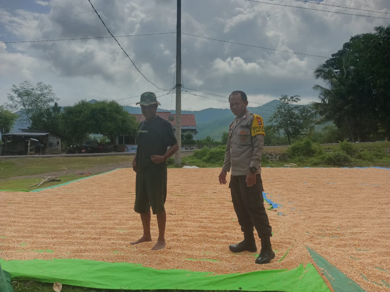 Dalam rangka mendukung pelaksanaan Program Ketahanan Pangan Nasional Menuju Indonesia Emas 2045, Bhabinkamtibmas Desa Riwo Polsek Woja, Bripka Heri, melaksanakan pemantauan terhadap kegiatan panen jagung milik warga binaannya.