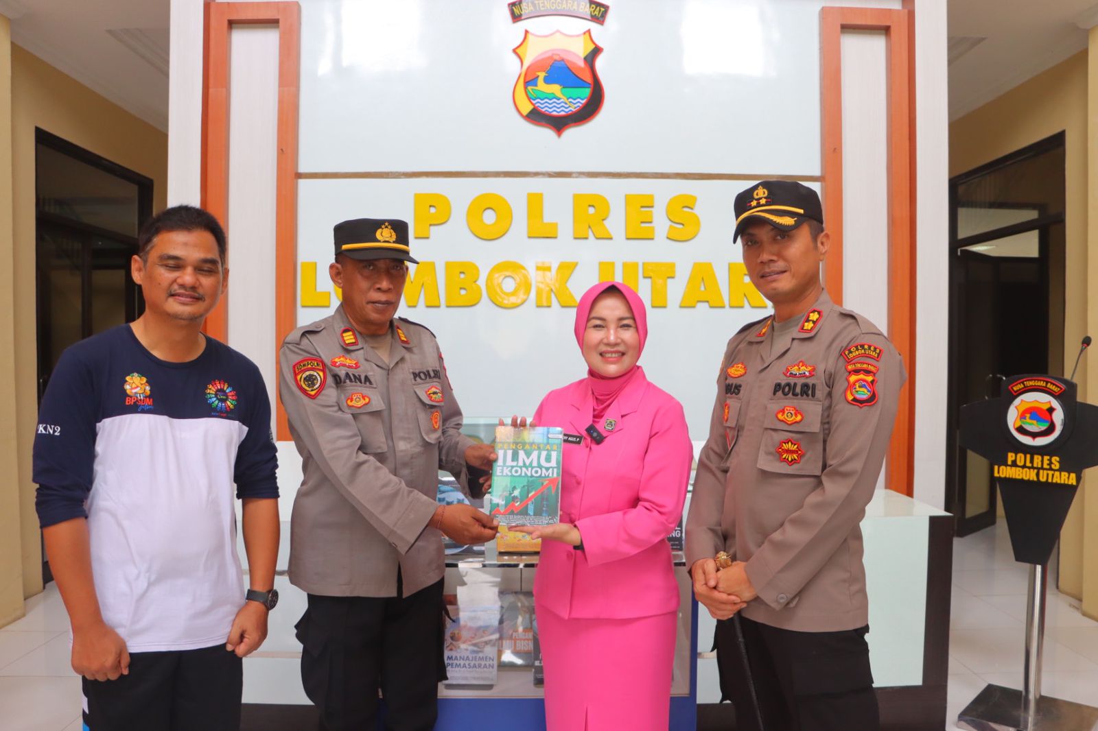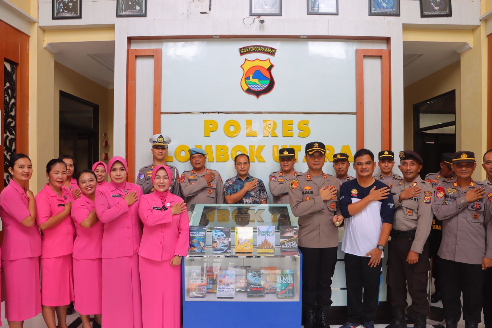 Kegiatan penuh makna ini berlangsung di Lobi Mapolres Lombok Utara, disaksikan oleh Kepala Dinas Perpustakaan dan Arsip Kabupaten Lombok Utara, Ir. M. Wahyu Darmawan, serta para pejabat utama Polres.