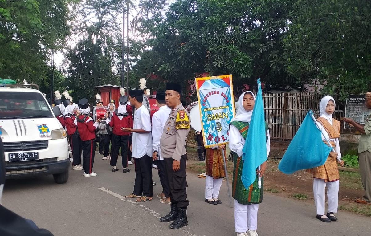 Personel Polsek Bolo Polres Bima Polda NTB melaksanakan pengamanan Pawai ta,aruf dalam rangka pembukaan Musabaqoh Tilawatil Qur’an (MTQ ). tingkat Desa Rada Kecamatan Bolo Kabupaten Bima.