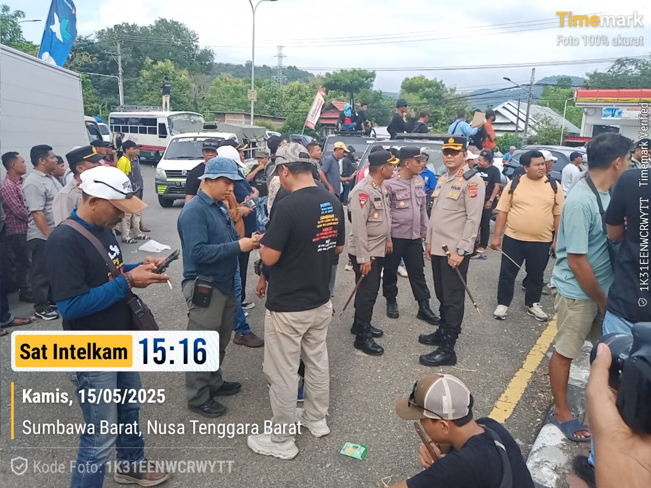 Kapolres Sumbawa AKBP Bagus Nyoman Gede Junaedi, S.H., S.I.K., M.A.P., bersama beberapa Pejabat Utama Polda NTB turut serta dalam pengamanan aksi unjuk rasa yang dilakukan oleh masyarakat tersebut.