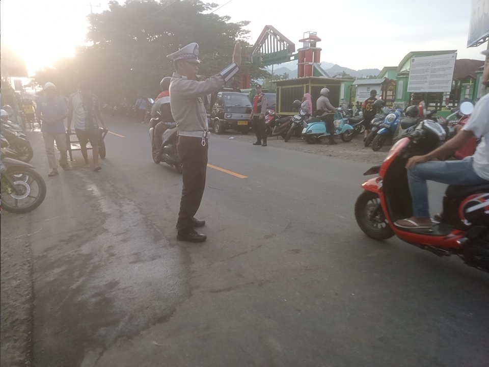 Lombok Utara – Polsek Tanjung melakukan penjagaan dan pengaturan arus lalulintas di pasar tradisional Tanjung KLU, Rabu, 21/5/2025.