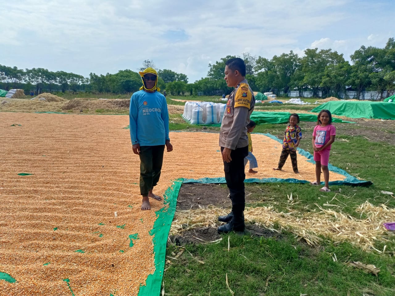 Kegiatan ini difokuskan pada pemantauan proses penjemuran jagung hasil panen milik warga atas nama Sdr. Samsul. Aipda Julkifli menyampaikan imbauan kepada para petani agar tetap mewaspadai perubahan cuaca, khususnya curah hujan yang datang secara tiba-tiba.