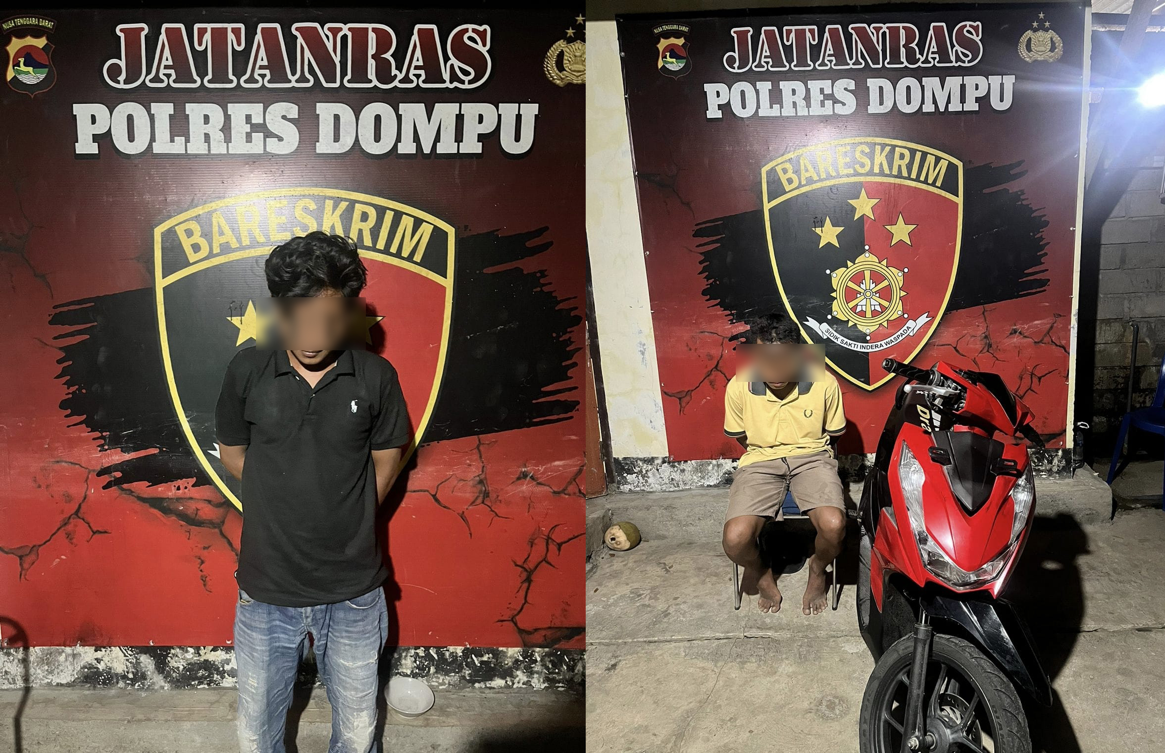 Dua terduga, masing-masing berinisial ARH (19) dan LKA (24), ditangkap di kamar Wisma Praja, Kelurahan Bada, Kecamatan Dompu, pada Minggu dini hari sekitar pukul 01.30 Wita. Saat hendak diamankan, keduanya menolak membuka pintu. Namun Tim Jatanras langsung melakukan tindakan tegas: mendobrak dan mengamankan mereka tanpa perlawanan berarti.