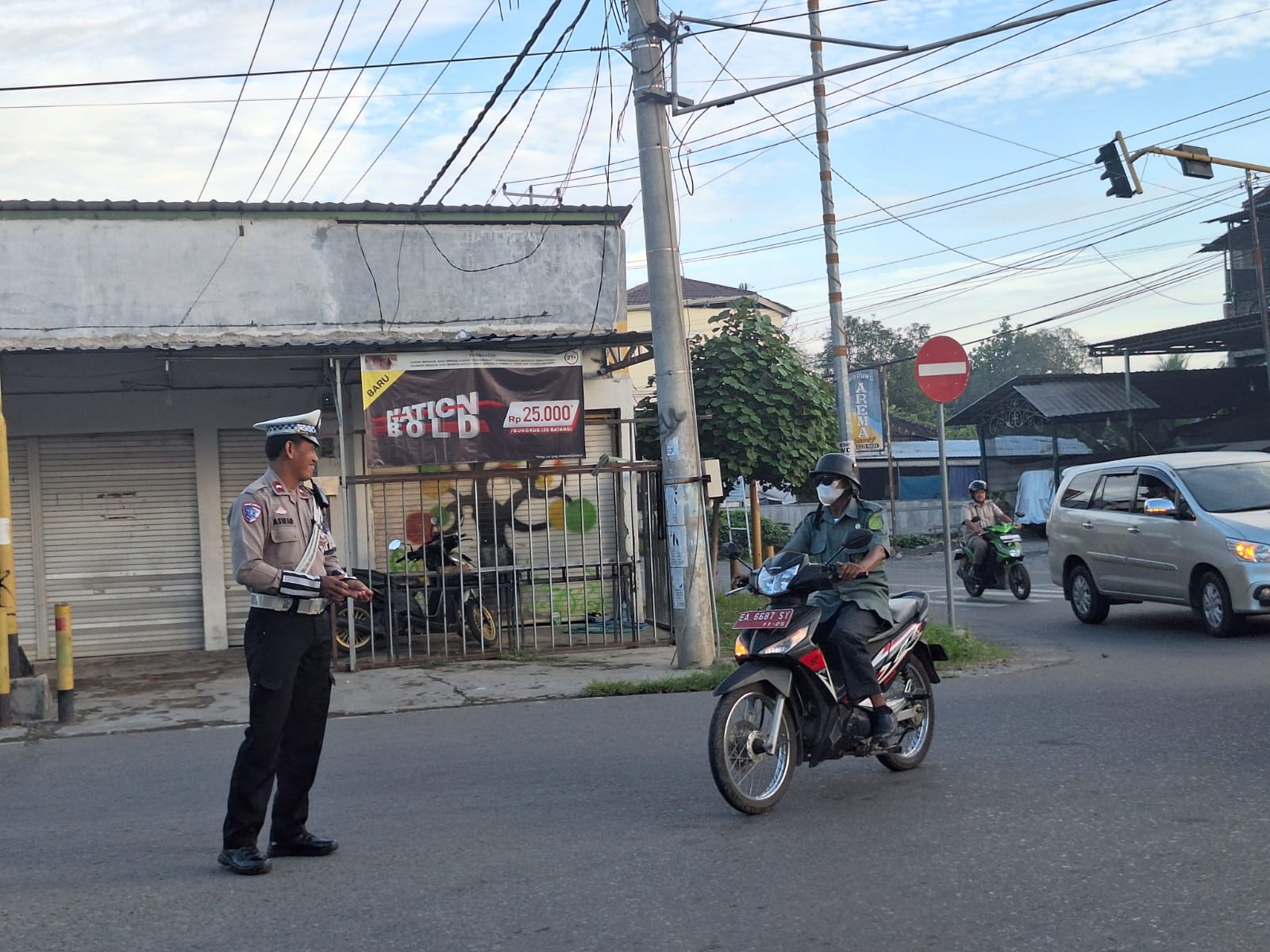 Selain mengatur arus lalu lintas, personel Satlantas juga memberikan imbauan kepada pengendara agar selalu mematuhi peraturan berlalu lintas, menggunakan helm standar bagi pengendara motor, serta sabuk pengaman bagi pengemudi mobil.