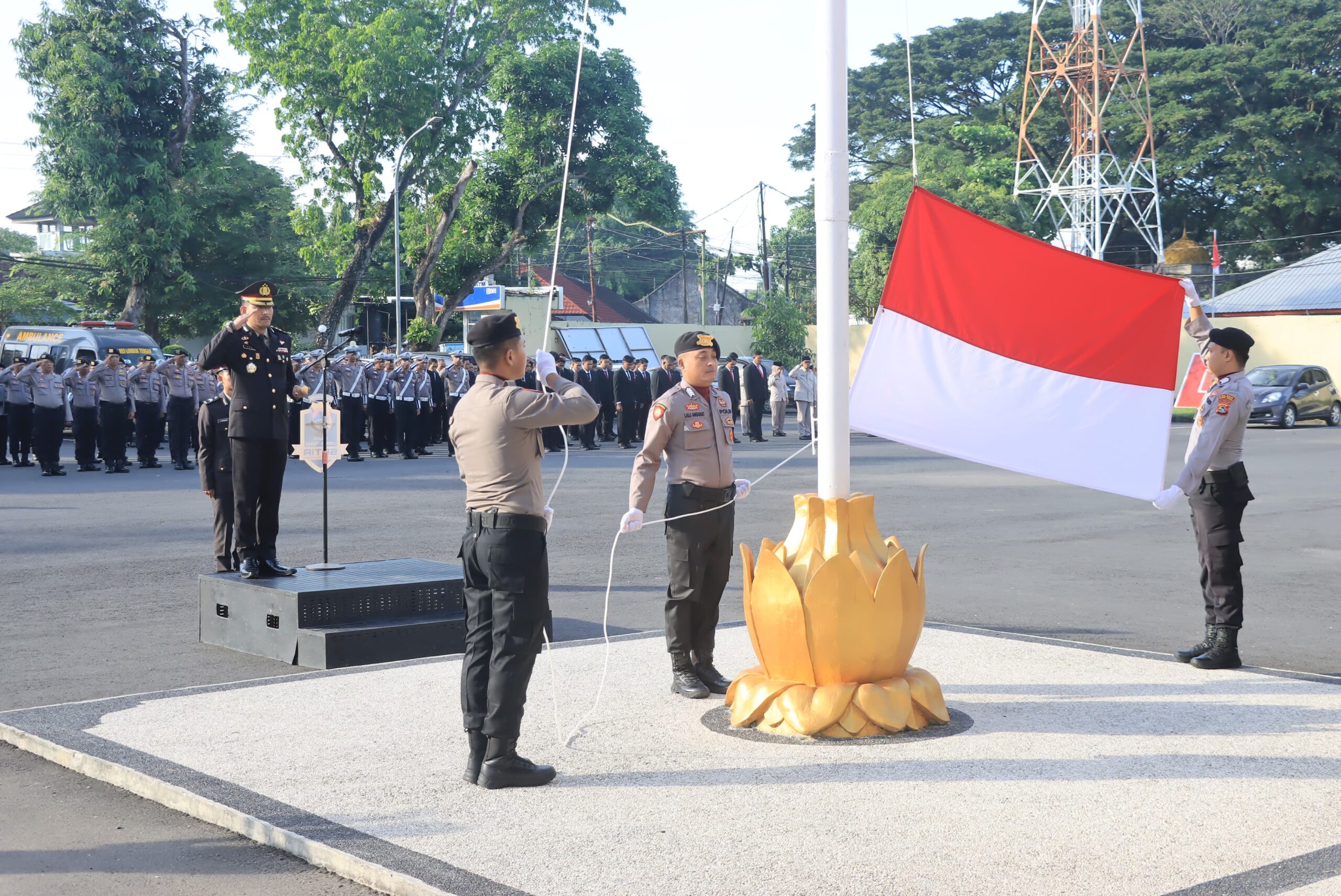 ‎Dalam amanatnya, AKBP Eko Yusmiarto S.I.K menyampaikan bahwa Hari Lahir Pancasila bukan sekadar momen untuk mengenang sejarah, melainkan momentum krusial untuk meneguhkan kembali komitmen terhadap nilai-nilai luhur yang menjadi fondasi tegaknya Negara Kesatuan Republik Indonesia.