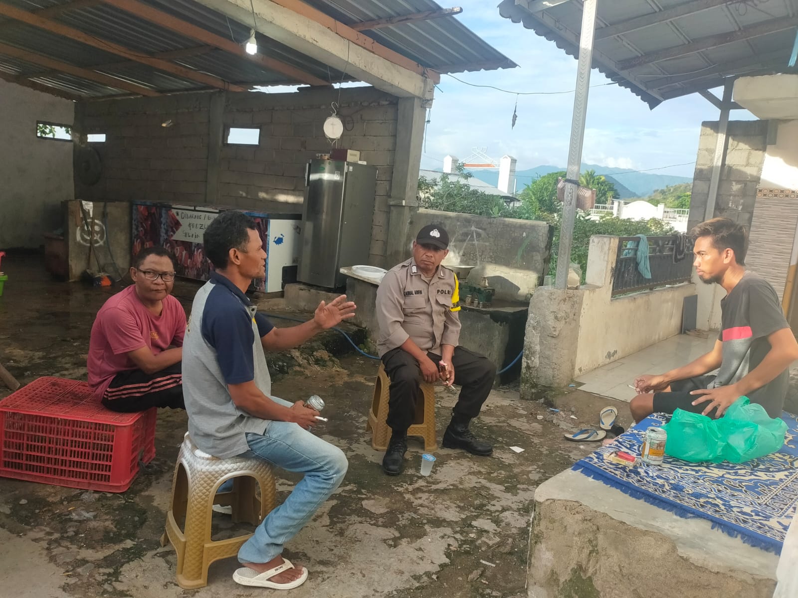 Kegiatan ini merupakan salah satu upaya Polri dalam memperkuat pendekatan humanis kepada masyarakat melalui komunikasi langsung dan penyampaian pesan-pesan Kamtibmas yang aktual dan relevan. Dalam kesempatan tersebut, BRIPKA Jainal berdialog dengan sejumlah warga yang sedang berkumpul di rumah salah satu tokoh masyarakat.