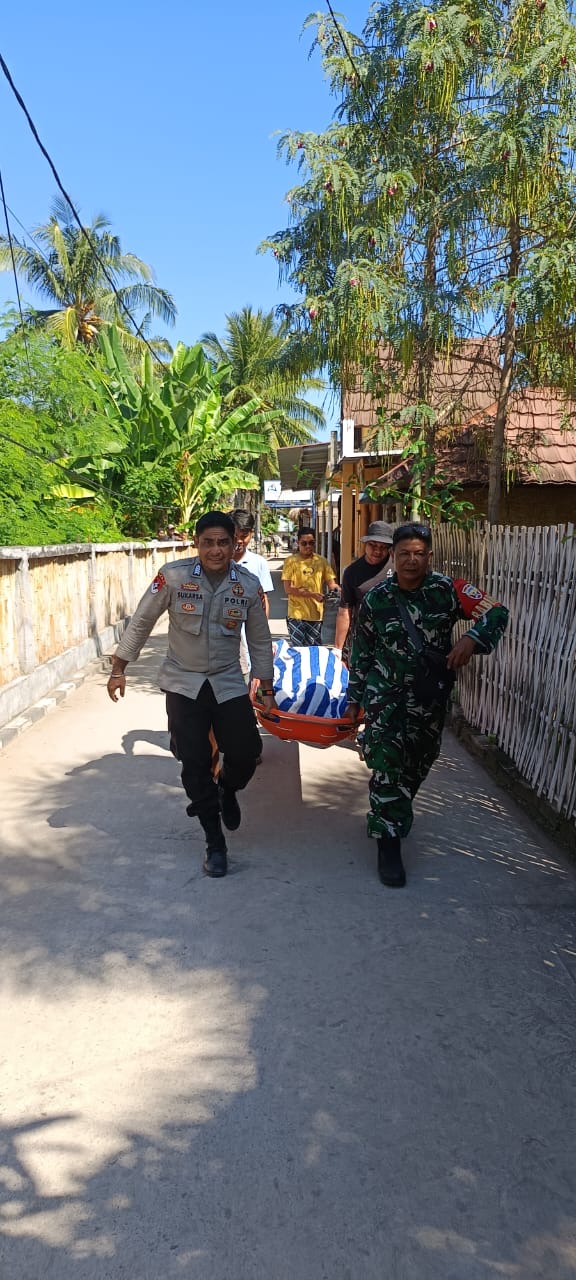 Melihat kondisi tersebut, anak korban segera meminta bantuan kepada warga dan wisatawan lain di sekitar. Upaya cepat dilakukan untuk mengevakuasi korban ke Klinik Gili Air (Clinic Center). Namun setelah diperiksa oleh petugas medis, korban dinyatakan telah meninggal dunia.