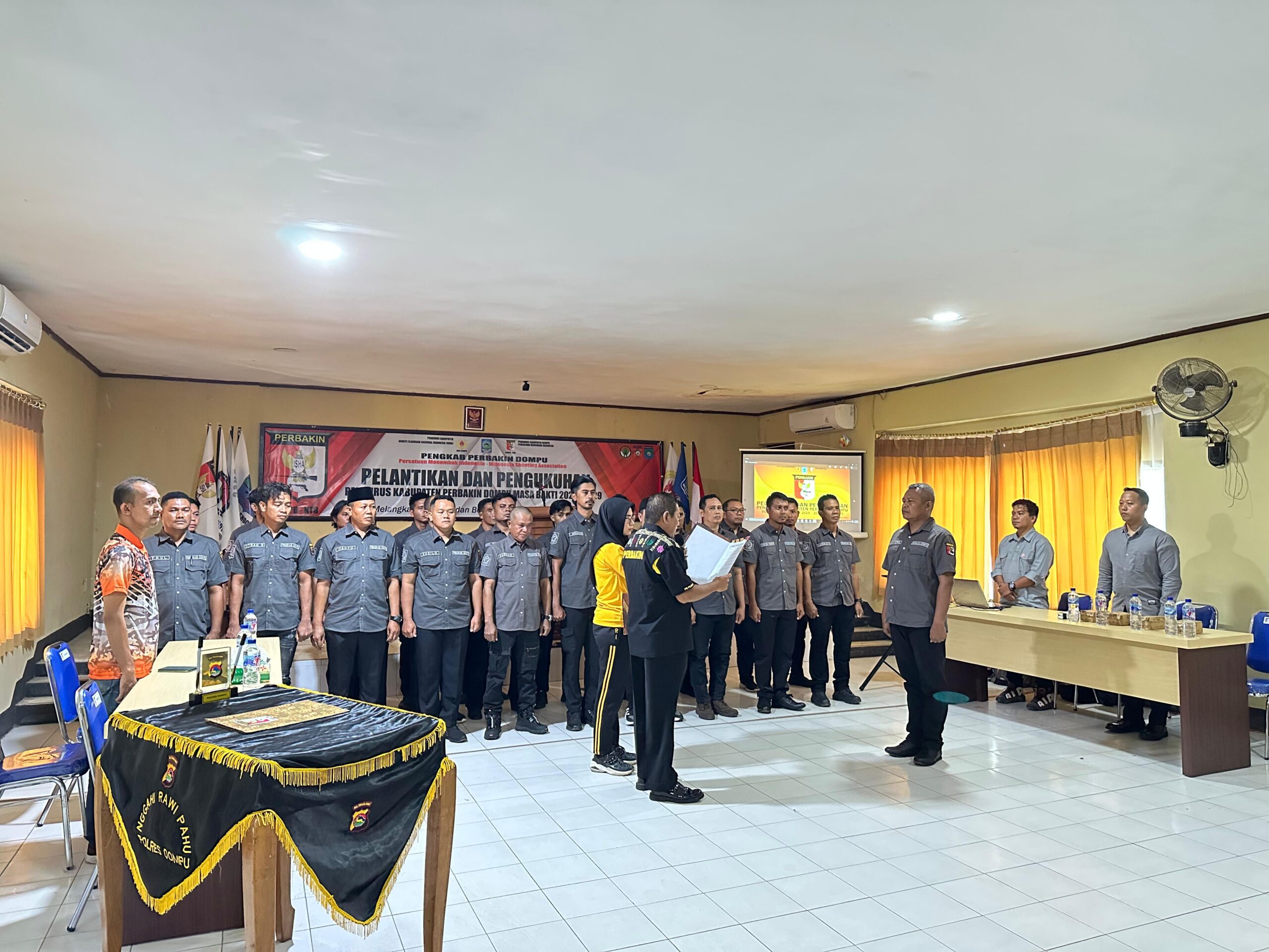 Pelantikan dihadiri oleh Wakil Bupati Dompu, Kapolres Dompu AKBP Sodikin Fahrojin Nur, S.I.K, perwakilan Dandim 1614/Dompu, Kabid Olahraga Dinas Dikpora Dompu, serta perwakilan Pengprov Perbakin NTB yang diwakili oleh Kepala Bidang Tembak Sasaran, Andik Budi Hariono. Turut hadir pula para pembina, penasehat, pengurus klub, dan pecinta olahraga menembak se-Kabupaten Dompu.