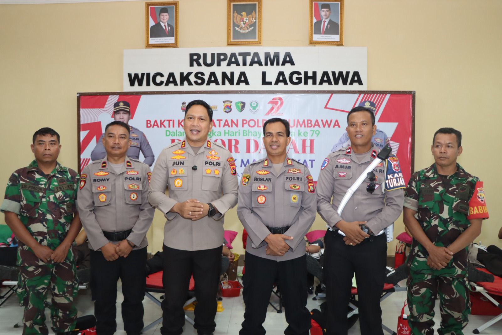 Sumbawa Besar–NTB, Jajaran Polres Sumbawa menggelar kegiatan donor darah dalam rangka memperingati HUT Bhayangkara ke-79 pada hari Senin (16/06/2025) . Acara yang dilaksanakan di ruang Rupatama Polres Sumbawa ini dimulai pukul 09.00 WITA dan dihadiri langsung oleh Kapolres Sumbawa, personel Kodim, Brimob, serta para anggota Bhayangkari Polres Sumbawa.