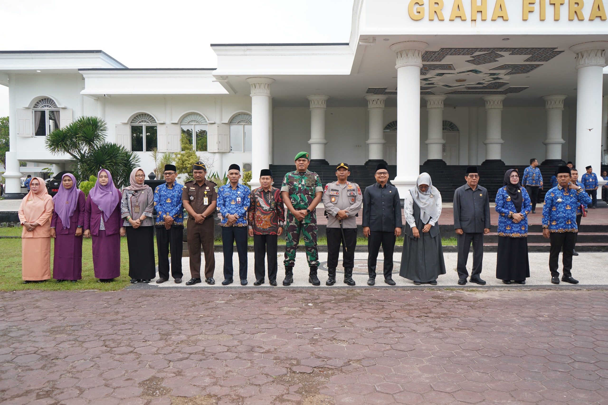 Upacara tersebut dipimpin langsung oleh Bupati Sumbawa Barat H. Amar Nurmansyah, S.T., M.Si., dan dihadiri oleh jajaran Forkopimda, antara lain Wakil Bupati Hj. Hanipah, S.Pt., M.M.Inov., Dandim 1628/Sumbawa Barat Letkol Inf. Andri Karsa, S.Sos., M.Han., Kapolres Sumbawa Barat AKBP Zulkarnain, S.I.K., Wakil Ketua II DPRD Merliza, S.Sos., Sekda Kabupaten Sumbawa Barat drh. Haerul, M.M., para kepala instansi vertikal, kepala OPD, serta tamu undangan lainnya.