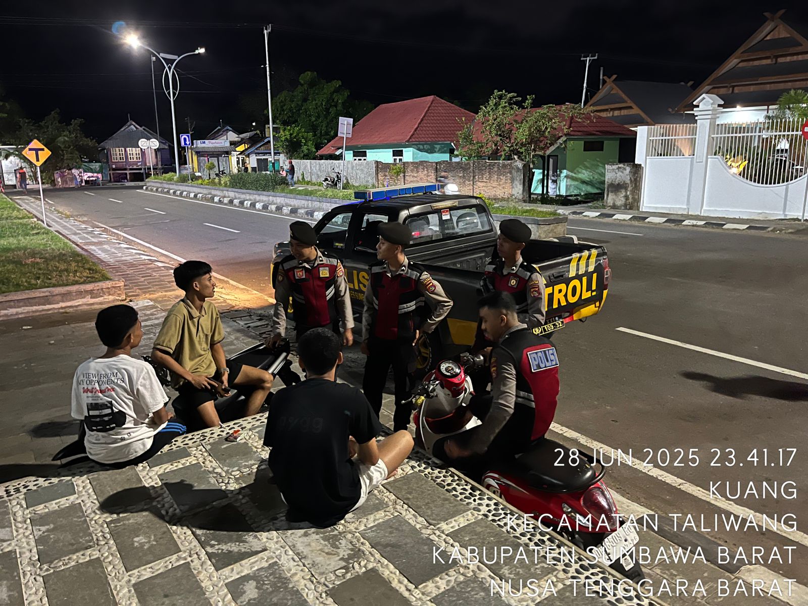 Selama patroli berlangsung, petugas menyambangi area-area yang rawan menjadi tempat berkumpul, termasuk kelompok remaja yang sedang nongkrong di sekitar Alun-Alun Taliwang. Dalam kesempatan tersebut, petugas menyampaikan imbauan secara humanis agar para remaja tidak beraktivitas hingga larut malam dan menjaga sikap selama berada di tempat umum.