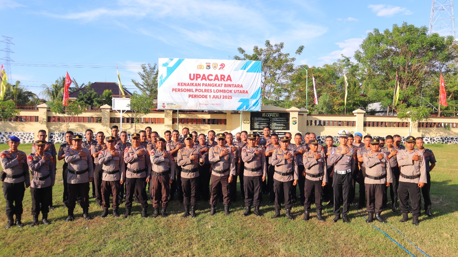 *Lombok Utara* — Menjelang peringatan Hari Bhayangkara ke-79, Senin (30/6/2025) pukul 16.00 Wita, jajaran Polres Lombok Utara menggelar upacara kenaikan pangkat untuk 35 personilnya. Kegiatan berlangsung khidmat di Lapangan Apel Mapolres Lotara.