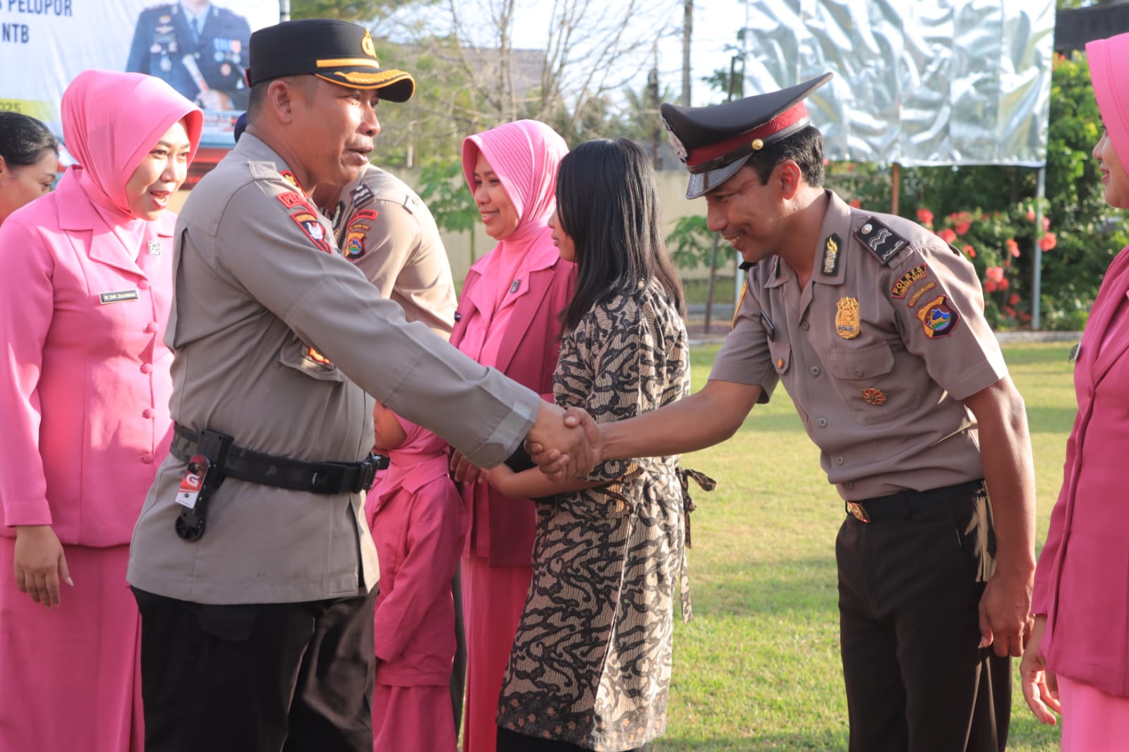 Usai upacara resmi, kegiatan dilanjutkan dengan pemberian ucapan selamat dari para pimpinan dan rekan sejawat kepada personel yang naik pangkat. Kehadiran keluarga yang mendampingi turut menambah suasana haru dan kebanggaan dalam momen tersebut. Sebagai bagian dari tradisi, dilakukan penyiraman air bunga oleh Kapolres Sumbawa Barat dan para Pejabat Utama sebagai simbol rasa syukur dan awal dari tanggung jawab yang baru.