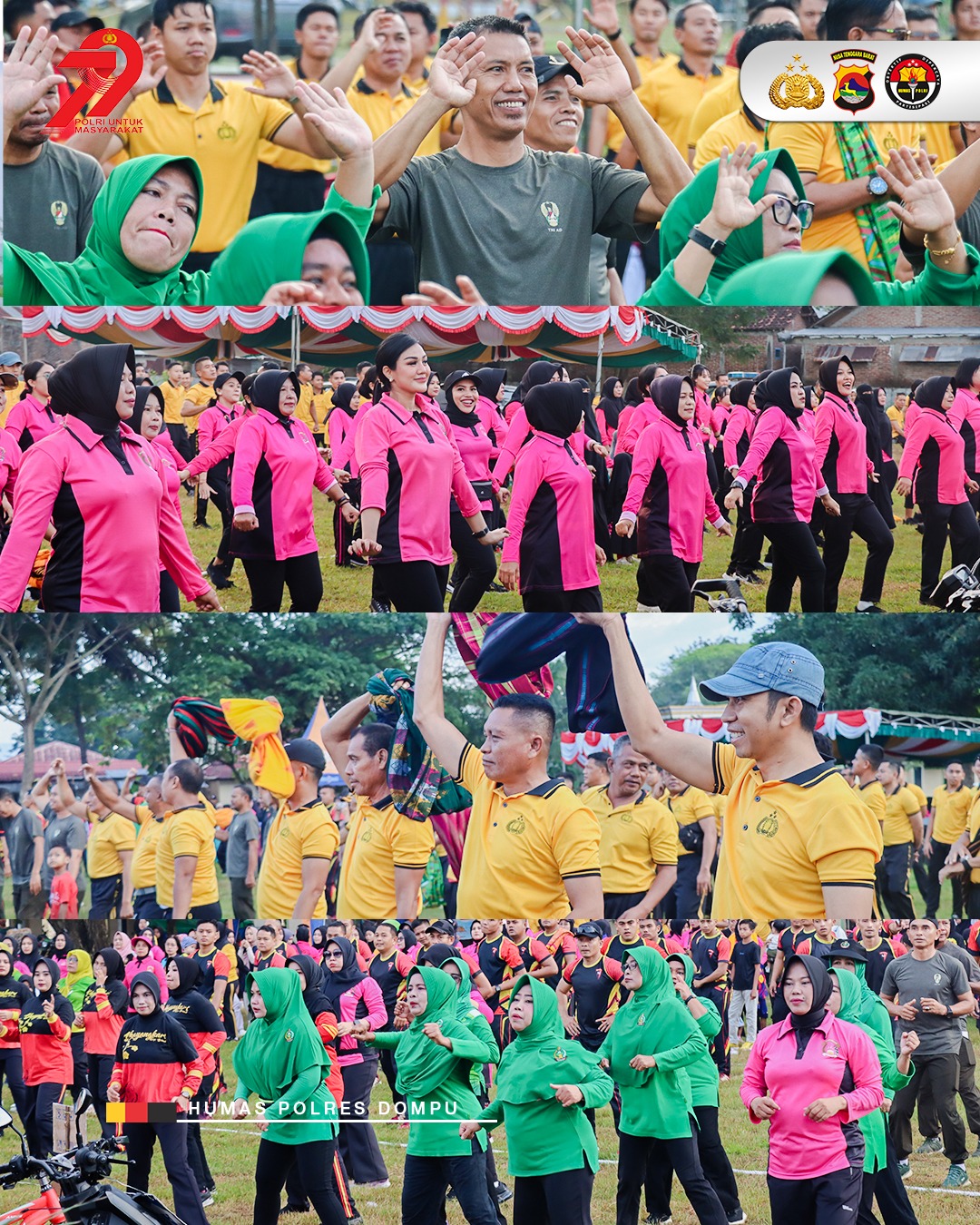 Dalam rangka menyemarakkan Hari Bhayangkara ke-79 Tahun 2025, Polres Dompu menggelar kegiatan olahraga bersama yang berlangsung meriah pada Sabtu, 28 Juni 2025, bertempat di Lapangan Sepak Bola Mapolres Dompu.