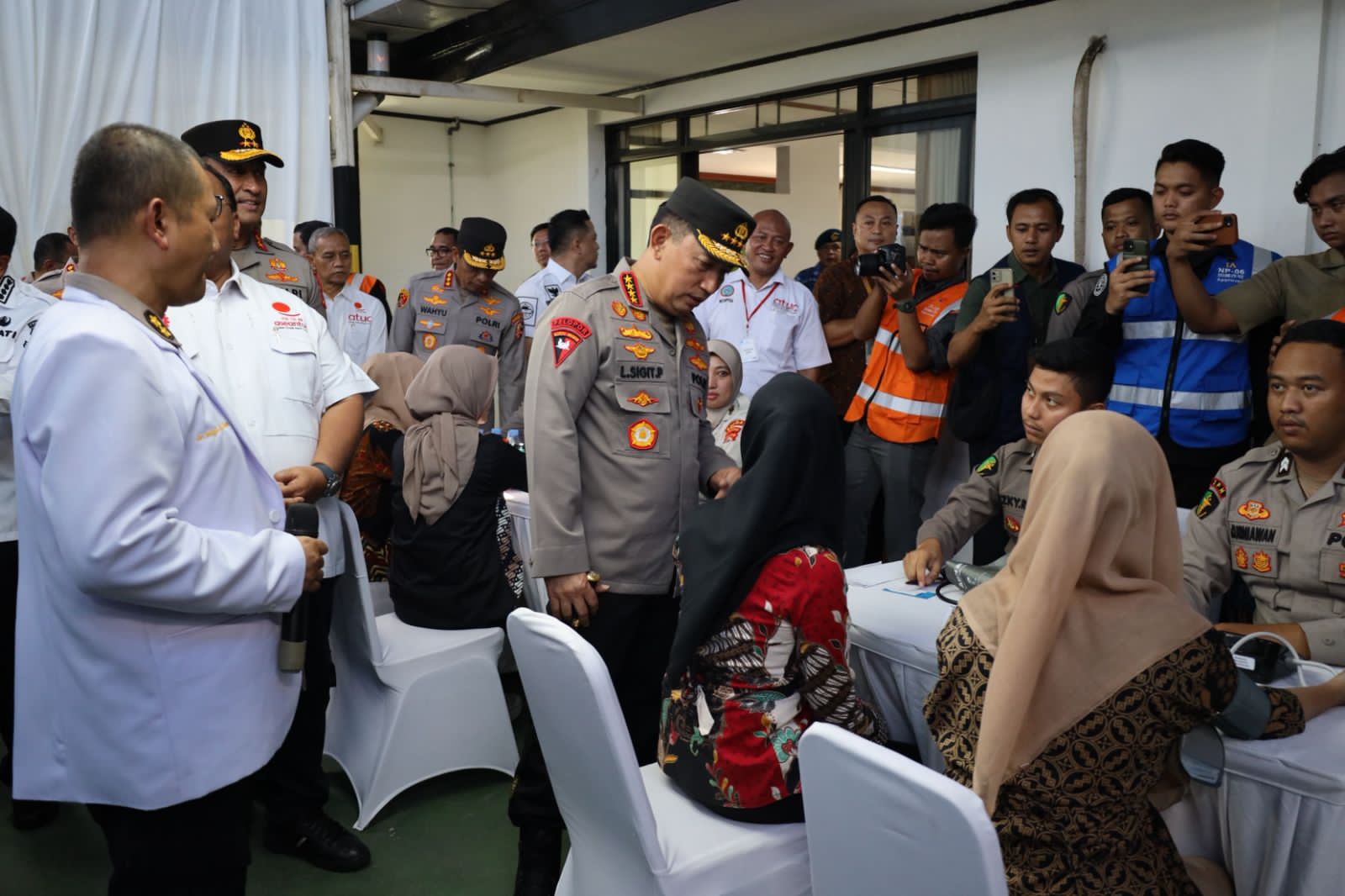 Tangerang – Rangkaian Hari Bhayangkara ke-79, Polri bersama Konfederasi Serikat Pekerja Seluruh Indonesia (KSPSI) menggelar kegiatan Bakti Kesehatan dan Donor Darah bertempat di PT Adis Dimension Footwear, Kabupaten Tangerang, Provinsi Banten pada Rabu (02/07). Pada acara ini, dilaksanakan pemberian santunan kepada 79 anak yatim piatu dari keluarga buruh.