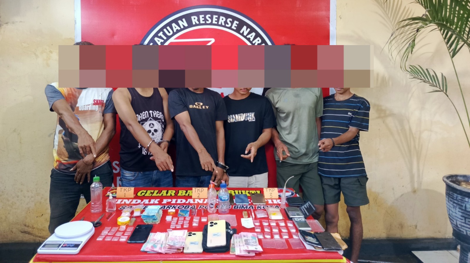 Gerebek Jaringan Narkoba, 6 Pengedar dan 40 Poket Sabu Diamankan Tim Opsnal Polres Bima Kota
