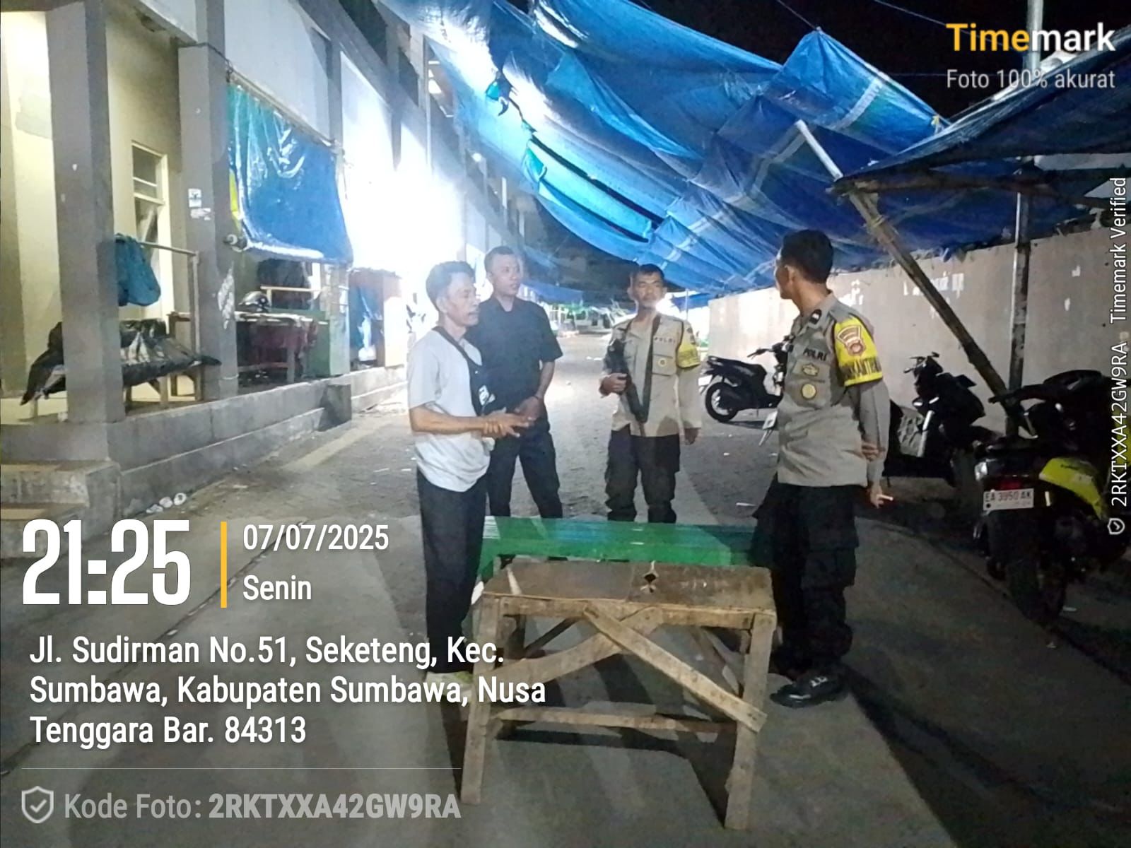 Sumbawa Besar – NTB, Anggota Piket Regu I Polsek Sumbawa melaksanakan Patroli Blue Light dan Kegiatan Rutin Yang Ditingkatkan (KRYD) di wilayah hukum Polsek Sumbawa pada Senin, 07 Juli 2025, pukul 21.14 Wita.