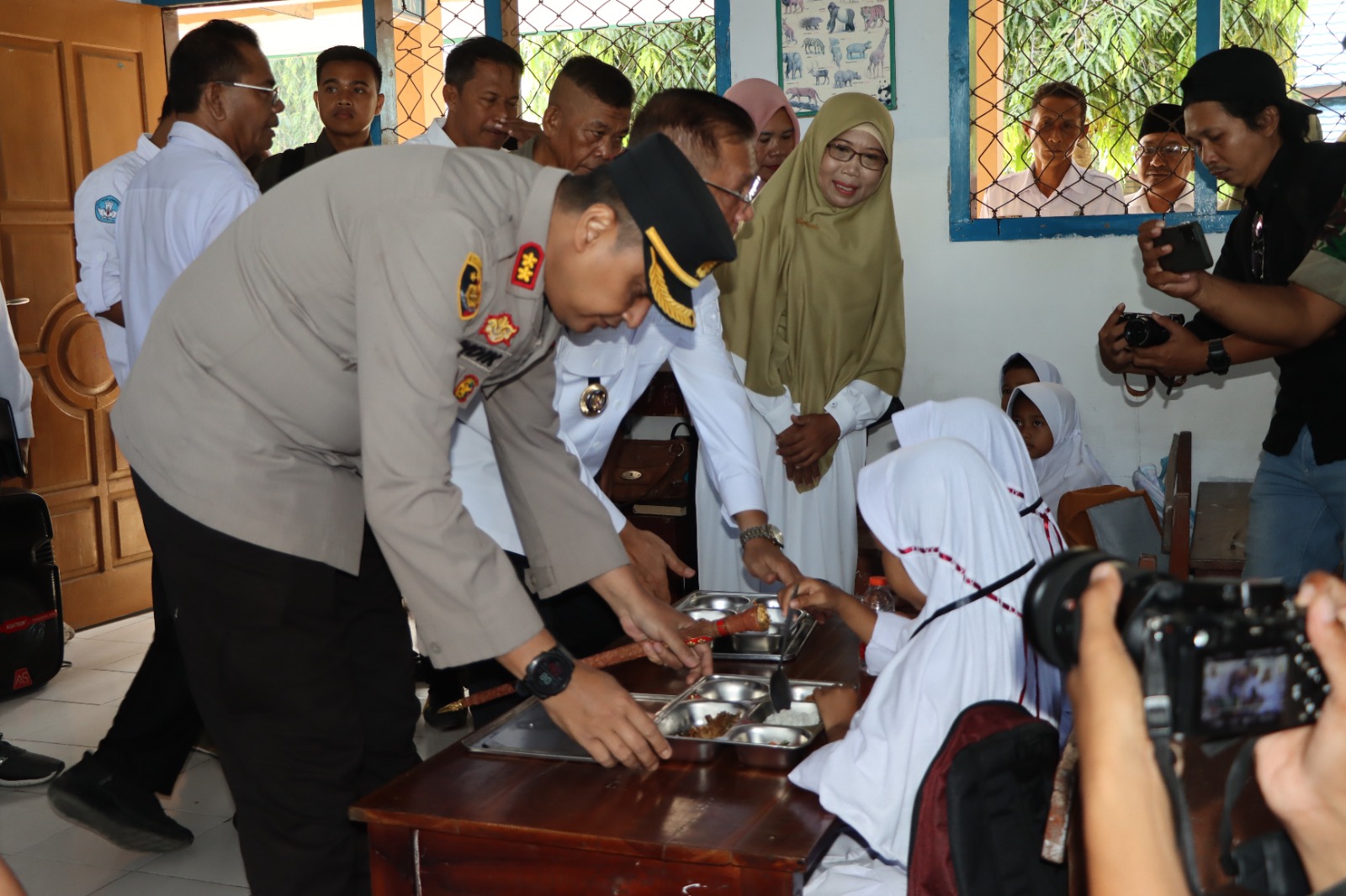 Kapolres Bima Kota AKBP Didik Putra Kuncoro menjelaskan bahwa sebanyak 215 siswa menjadi penerima manfaat dalam pelaksanaan makan bergizi gratis kali ini. Para siswa melakukan makan bersama sebagai bagian dari peresmian program tersebut.