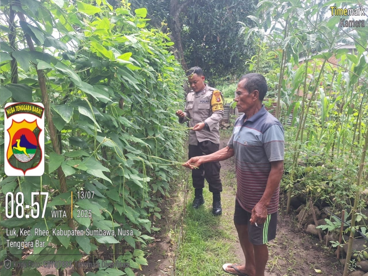 Sumbawa Besar, NTB — Sinergi antara Kepolisian dan masyarakat kembali terjalin erat dalam upaya mendukung program ketahanan pangan nasional. Pada Minggu, 13 Juli 2025, pukul 08.55 WITA, Bhabinkamtibmas Desa Luk, Brigadir I Komang Widnyana, mendatangi pekarangan rumah Bapak Ramliana di Dusun Luk A, Desa Luk, Kecamatan Rhee, Kabupaten Sumbawa.