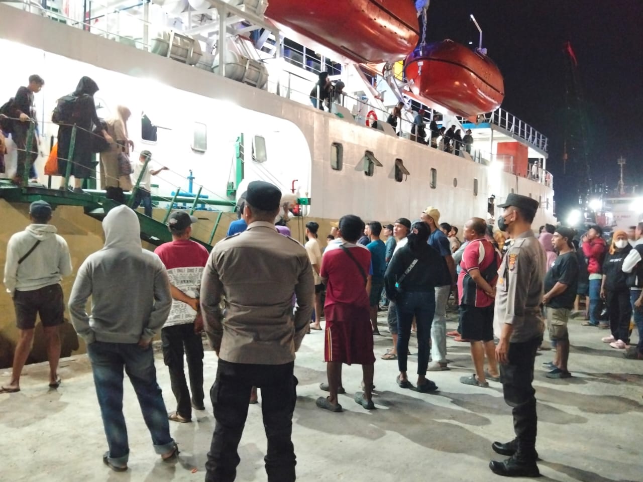 “Pengamanan dilakukan guna memastikan proses kedatangan penumpang berjalan aman dan lancar. Selain itu, kegiatan ini juga sebagai langkah antisipasi terhadap peredaran minuman keras ilegal yang kerap diselundupkan melalui jalur laut,” ujar Iptu Kuntho.
