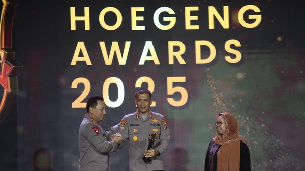 Jakarta – Kapolri Jenderal Listyo Sigit Prabowo menyampaikan pesan khusus kepada penerima penghargaan Hoegeng Awards 2025 kategori polisi berintegritas Kombes Seminar Sebayang yang menjabat Kepala SPN Polda Sulawesi Tengah.